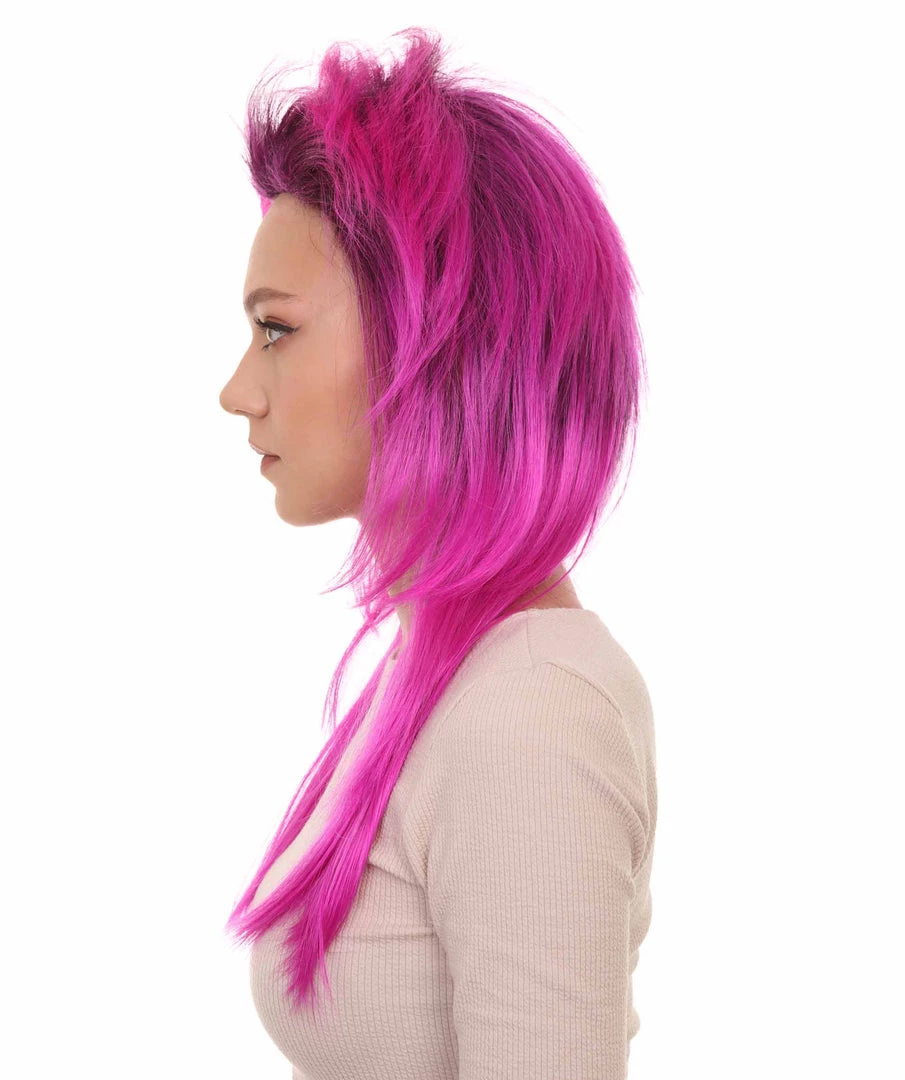 HPO Rock Star Mens Wig | Neon Purple Mullet Long Wig | Premium Breathable Capless Cap