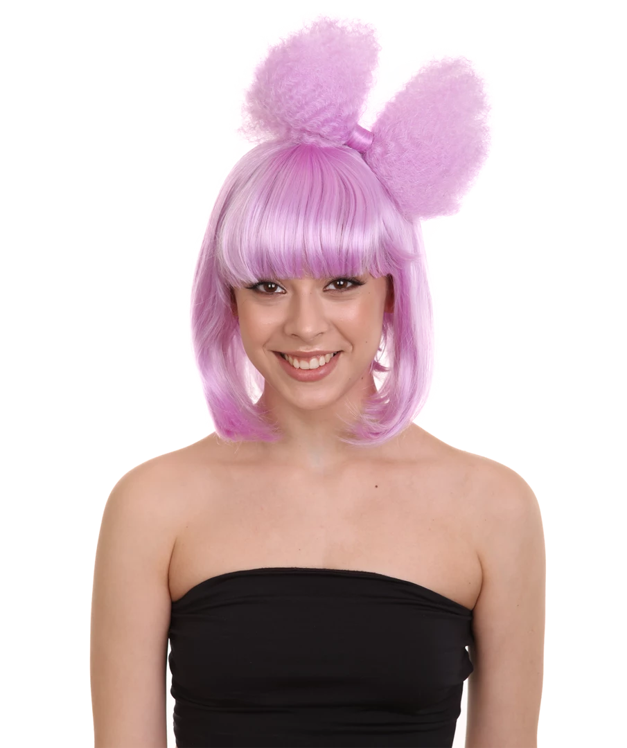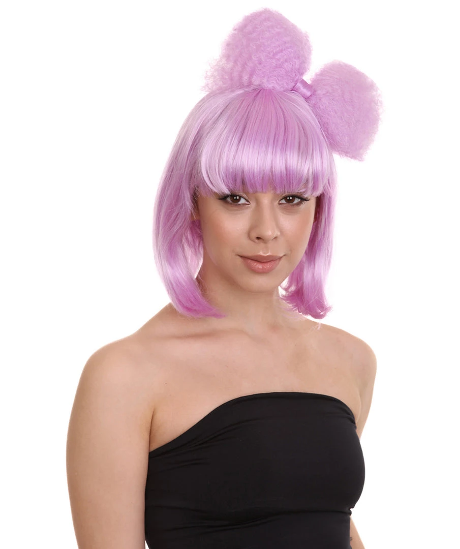 HPO Singer Women’s Wig | Neon Purple Pop Srar Wig With Bow | Premium Breathable Capless Cap