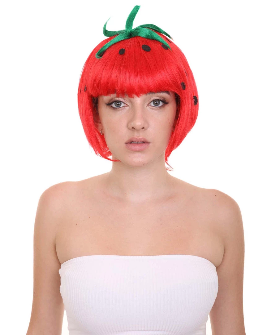 HPO Strawberry Womens Wig | Fruit Party Ready Fancy Cosplay Halloween Wig | Premium Breathable Capless Cap
