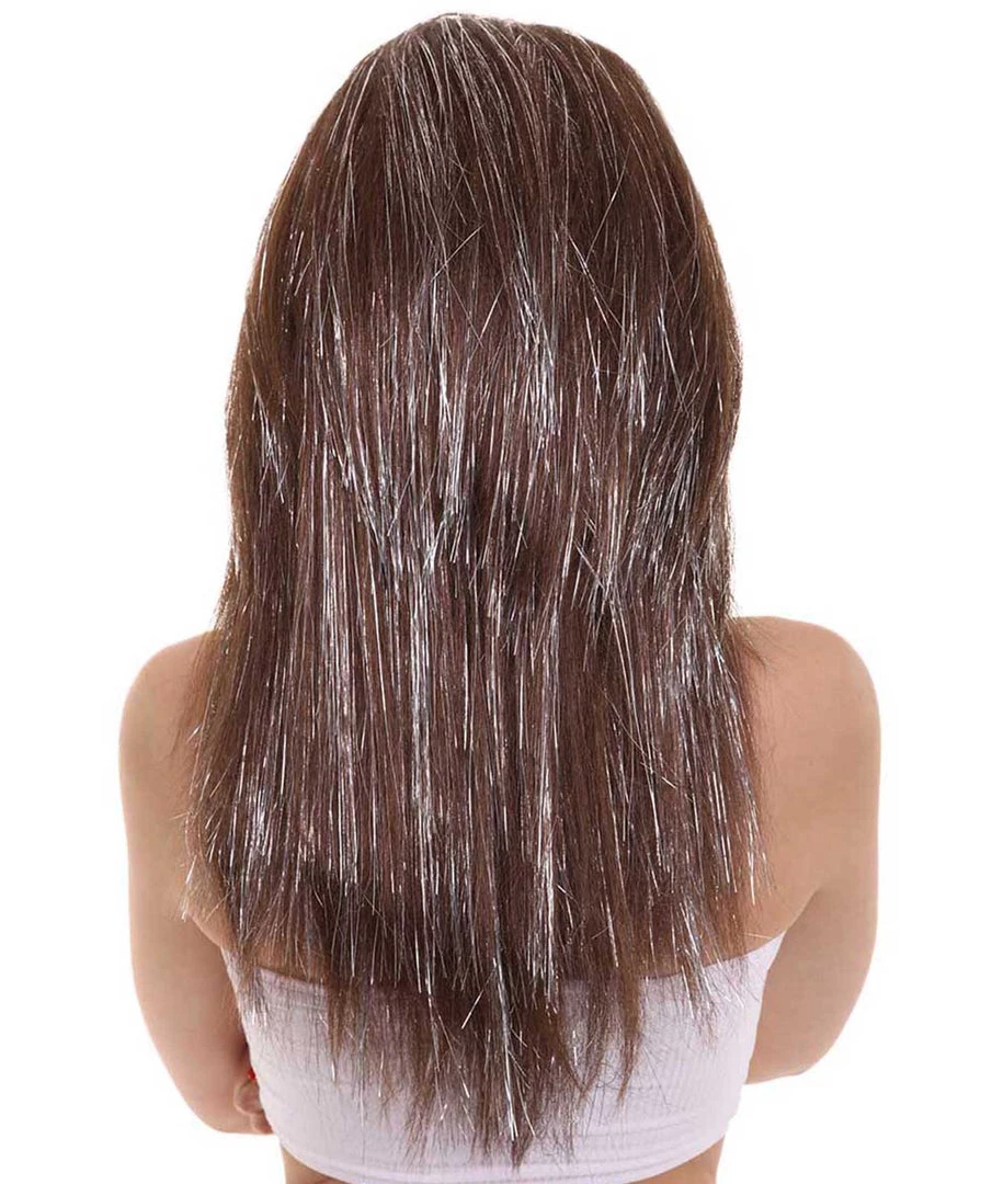 Be the first to review “HPO Women’s 60’s Brunette Bouffant With Silver Tinsel Highlights | Halloween Rave Wig | Premium Breathable Capless Cap” Cancel reply