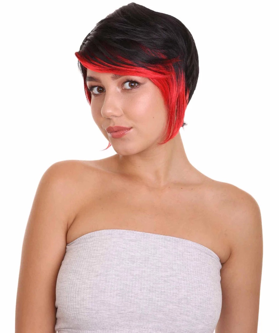 HPO Women’s Anime Cosplay Party Black And Red Womens Wig | Cartoon Two Toned Cosplay Halloween Wig | Premium Breathable Capless Cap