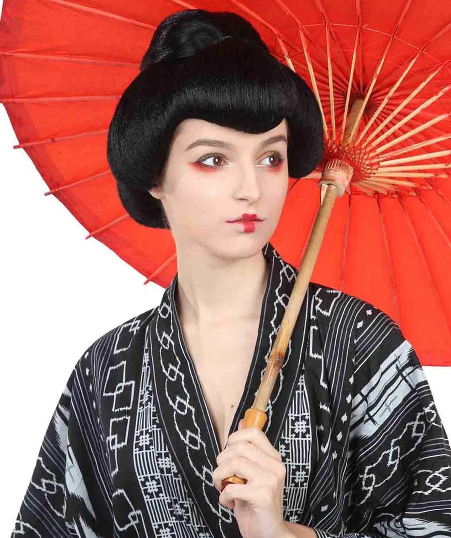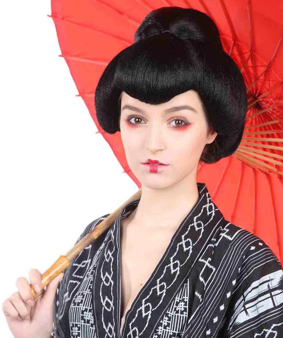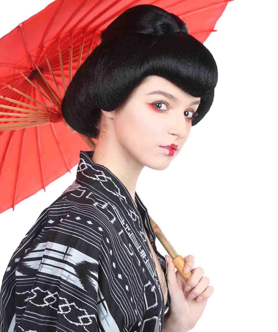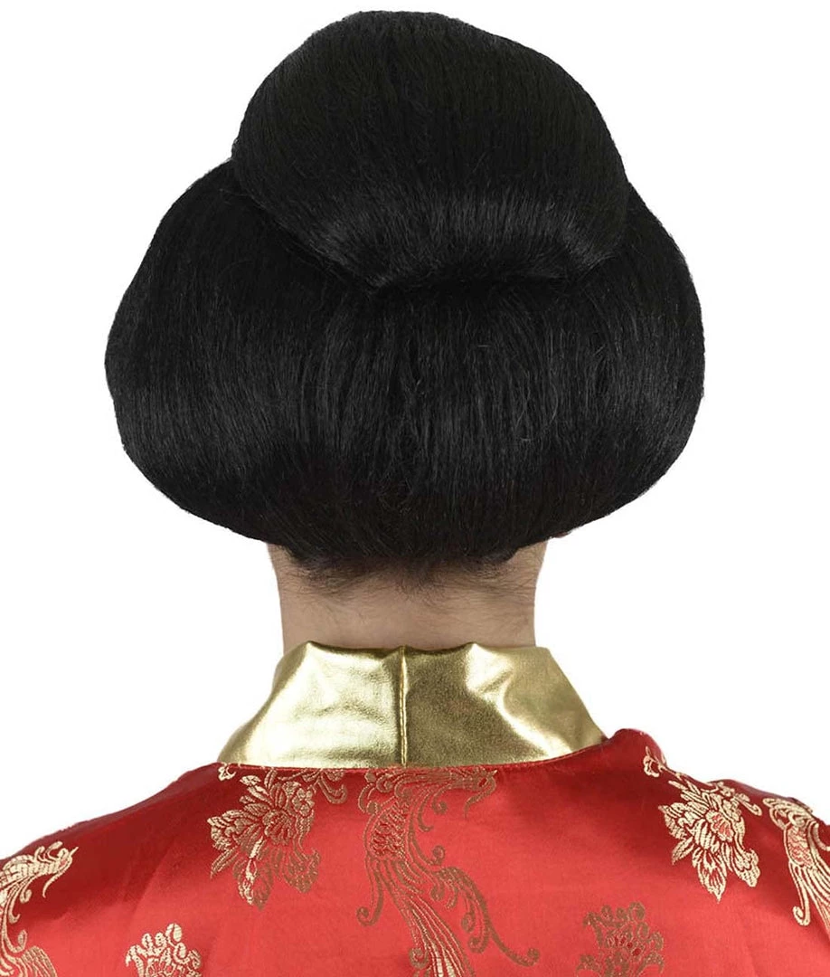 HPO Women’s Japanese Geisha Womens Wig | Asian Black Kung Fu Wig | Premium Breathable Capless Cap