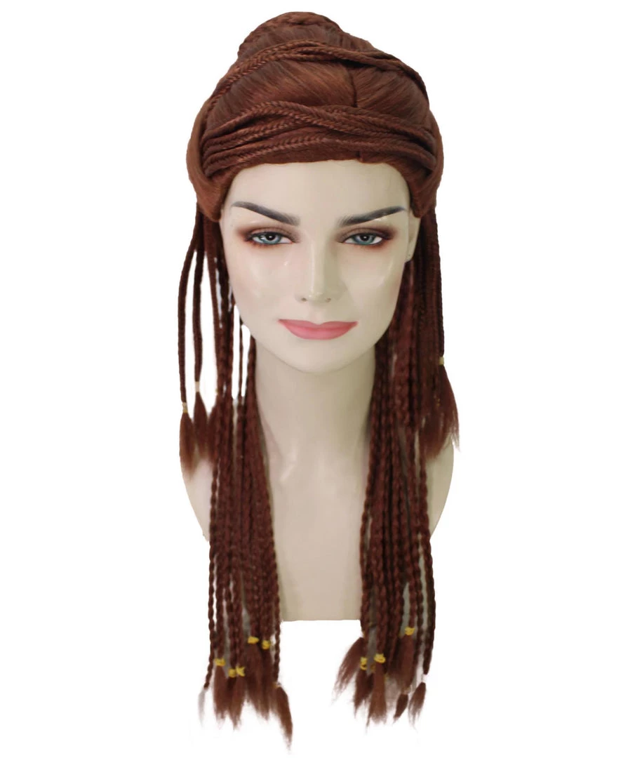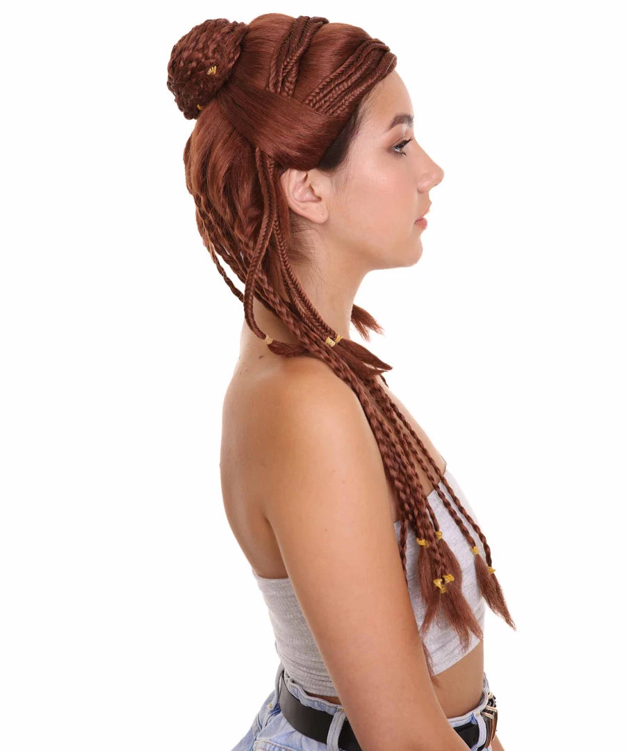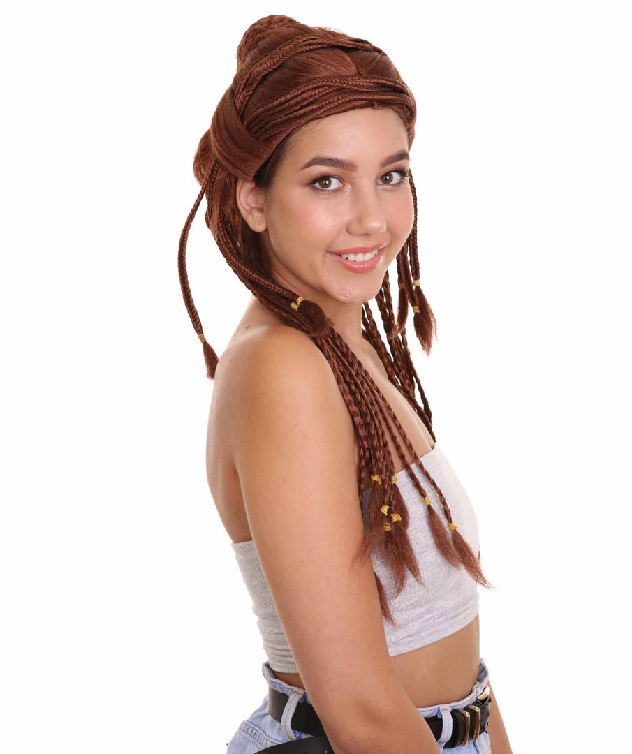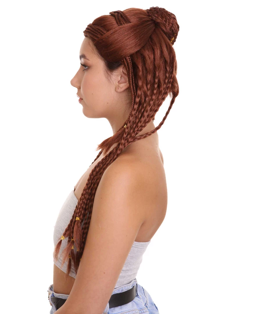 HPO Women’s Long Length No Part Brown Braided Cosplay Wig | Premium Breathable Capless Cap