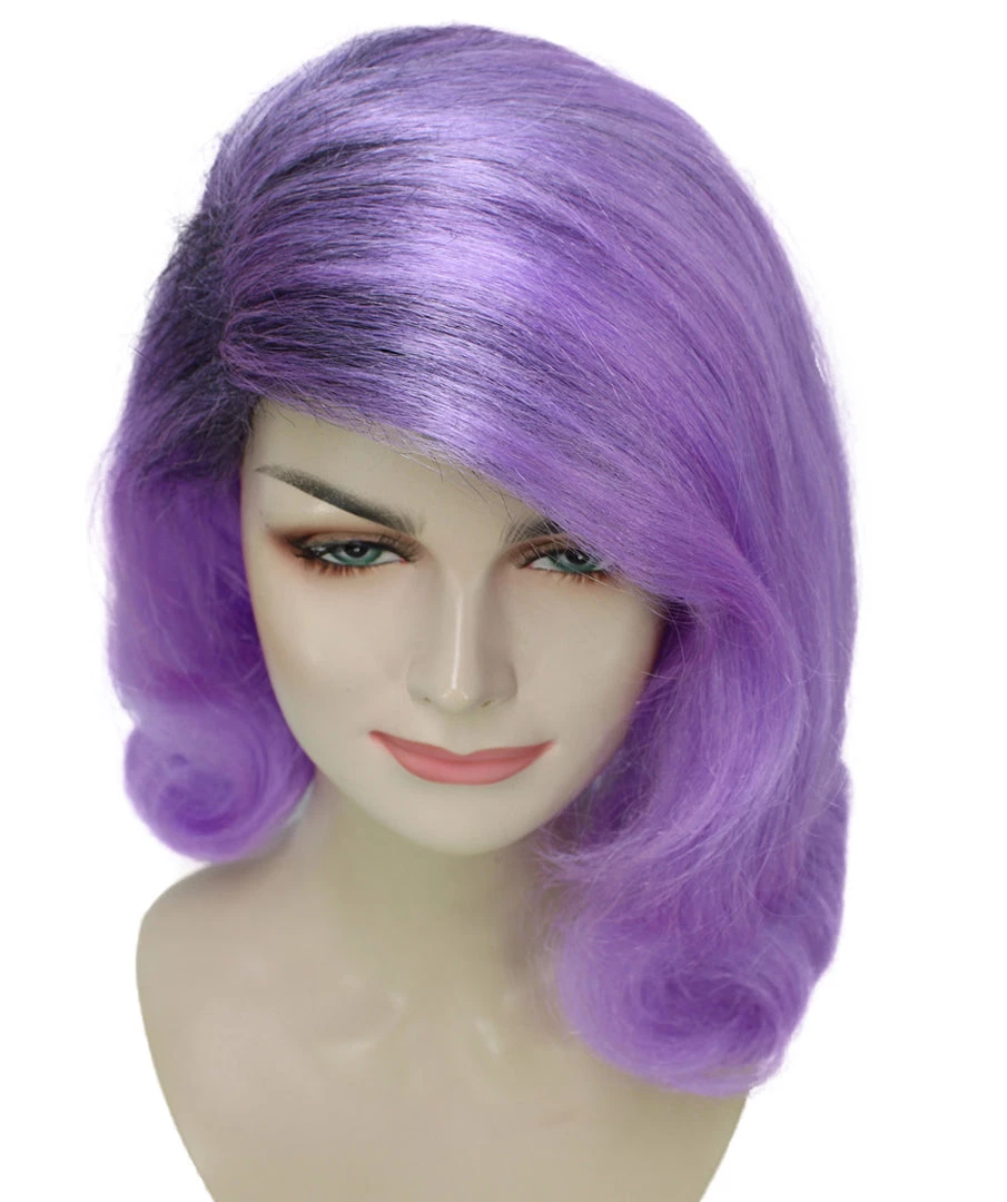 HPO Women’s Shoulder Length Electric Purple Fashion Blogger Wig – Purple Hair With Dark Roots – Capless Cap Design