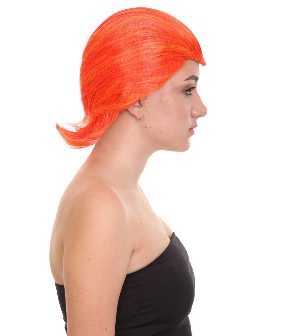 HPO Women’s Supervillain Womens Wig | Orange Sexy Cosplay Party Halloween Wig | Premium Breathable Capless Cap