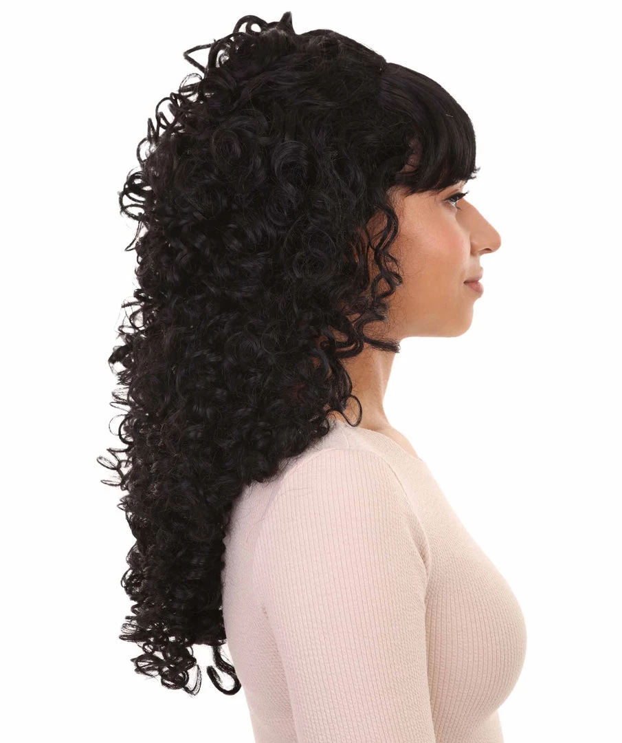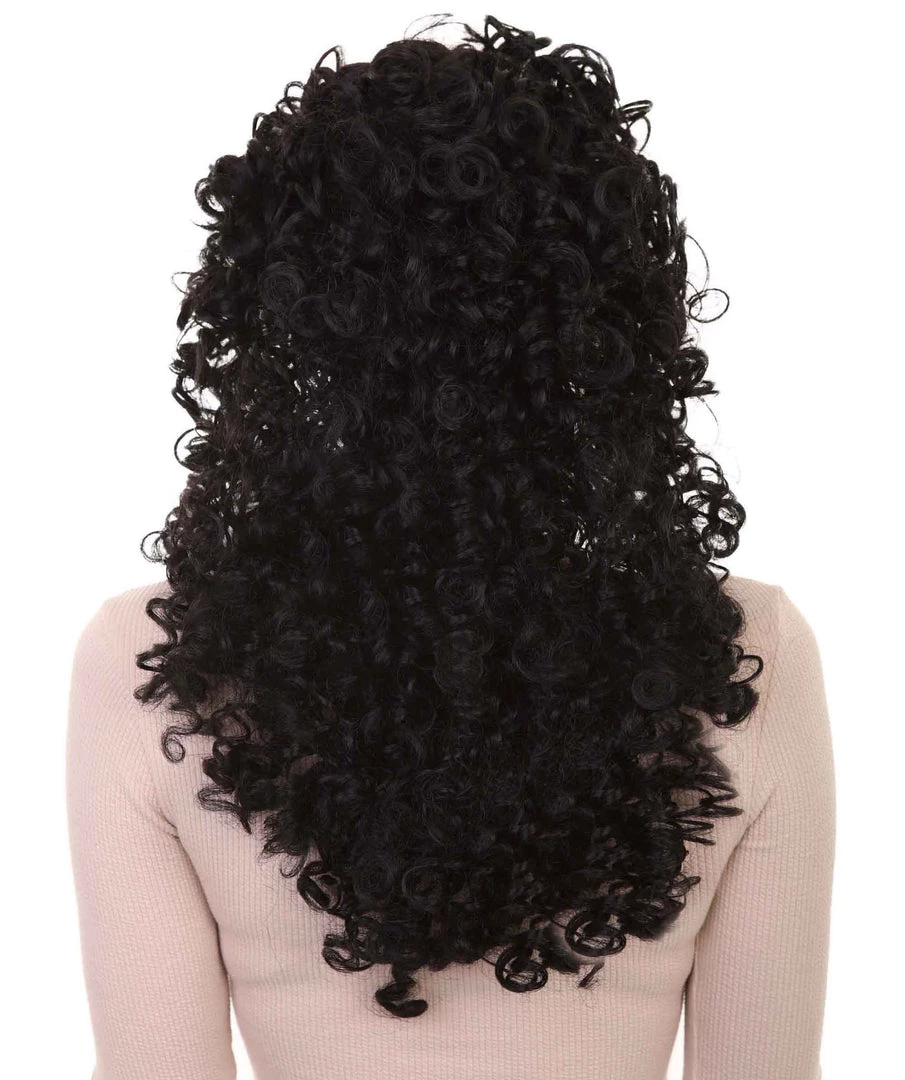 HPO Women’s Womens 18th Century Colonial Lady Curly Black Historical Wig | Premium Breathable Capless Cap