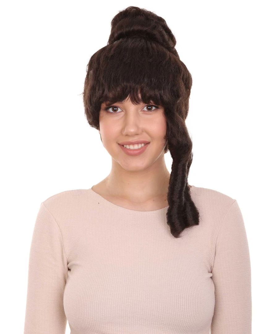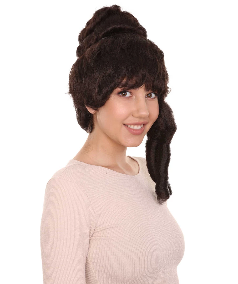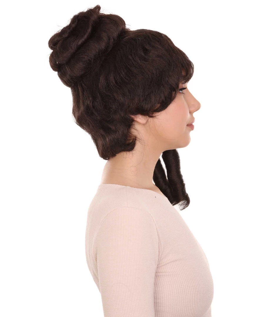 HPO Women’s Womens Colonial Ladies 18th Century Curly Wig | Dark Brown Historical Wig | Premium Breathable Capless Cap