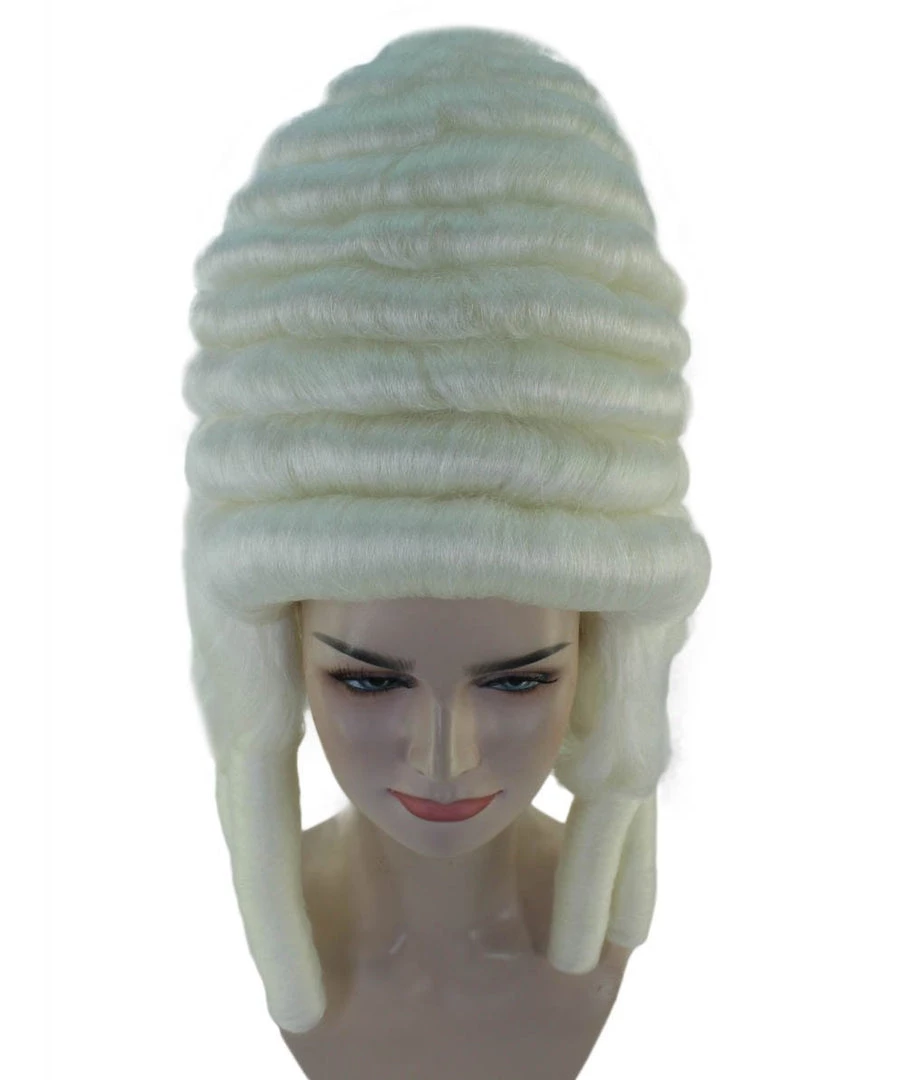 HPO Women’s Womens Colonial Lady’s 18th Century Curly Wig | White Historical Cosplay Wig | Premium Breathable Capless Cap