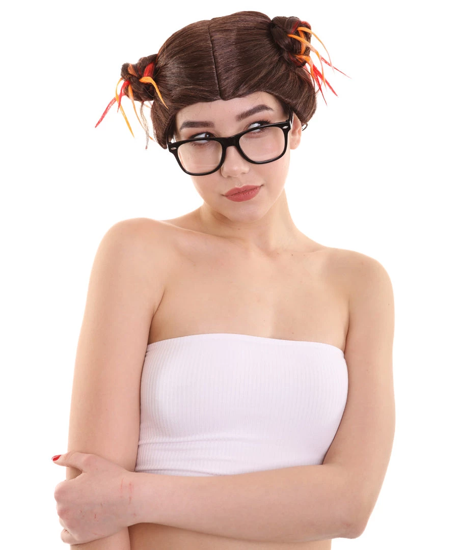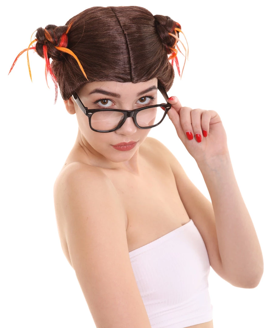 HPO Women’s Womens Fantasy Dizzy Buns Wig With Glasses Set | Brown TV/Movie Wigs | Premium Breathable Capless Cap