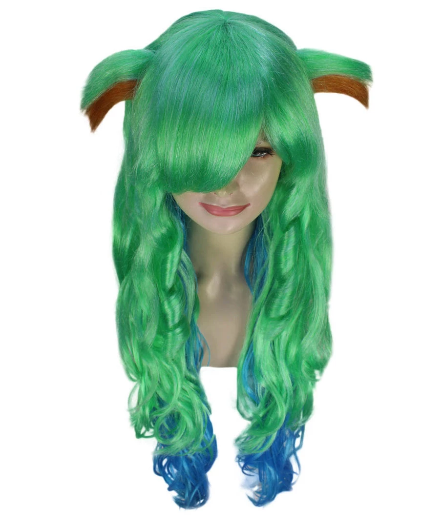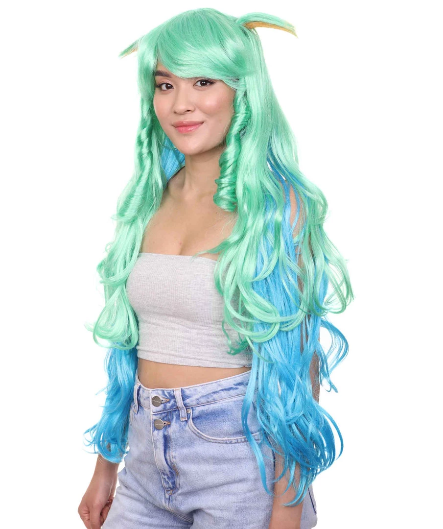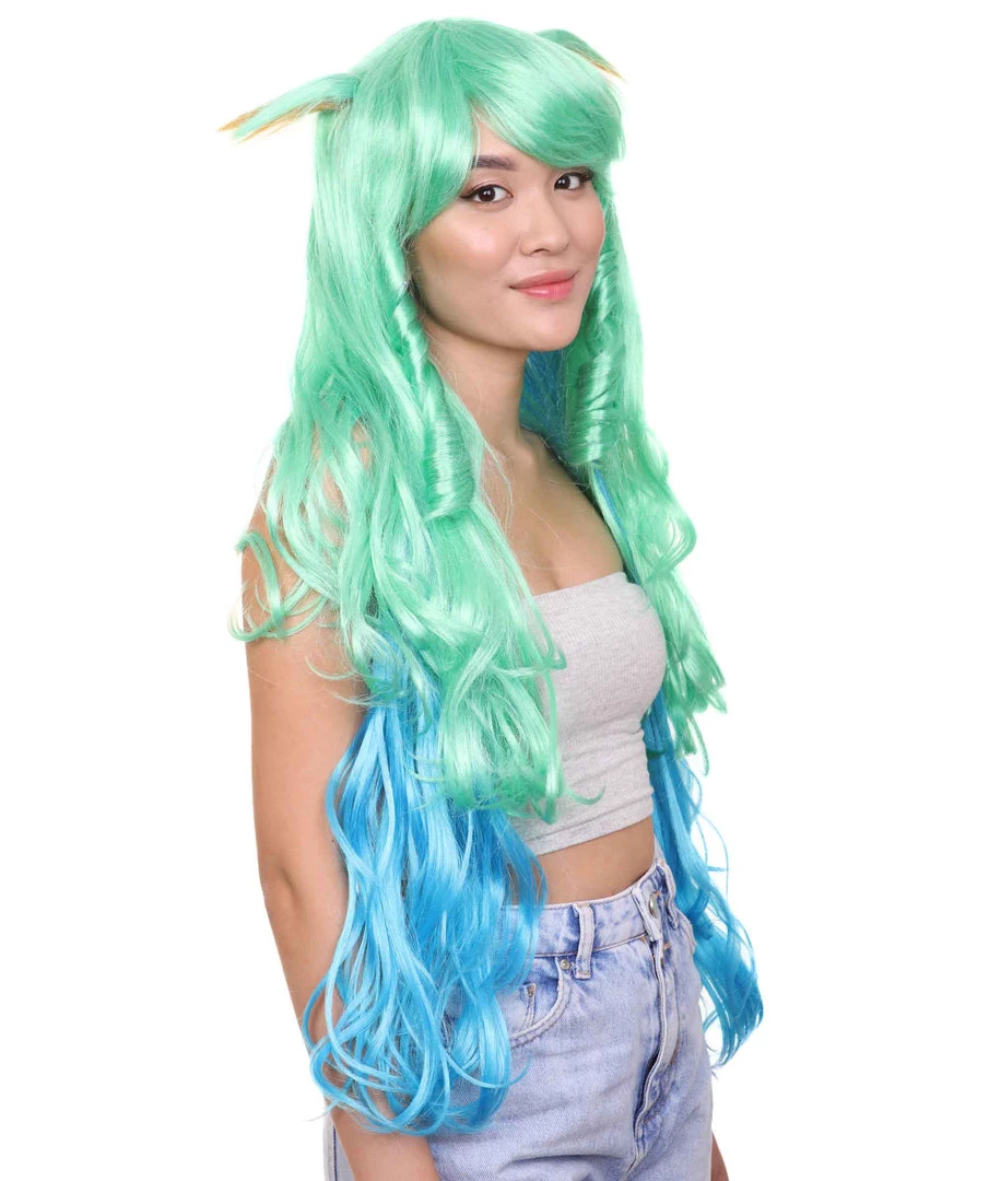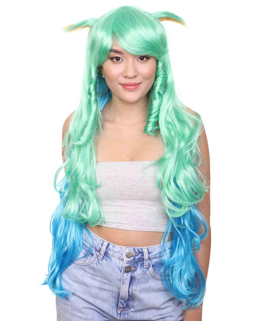 HPO Women’s Womens Gaming Wig | Green And Blue Anime Cosplay Wigs | Premium Breathable Capless Cap