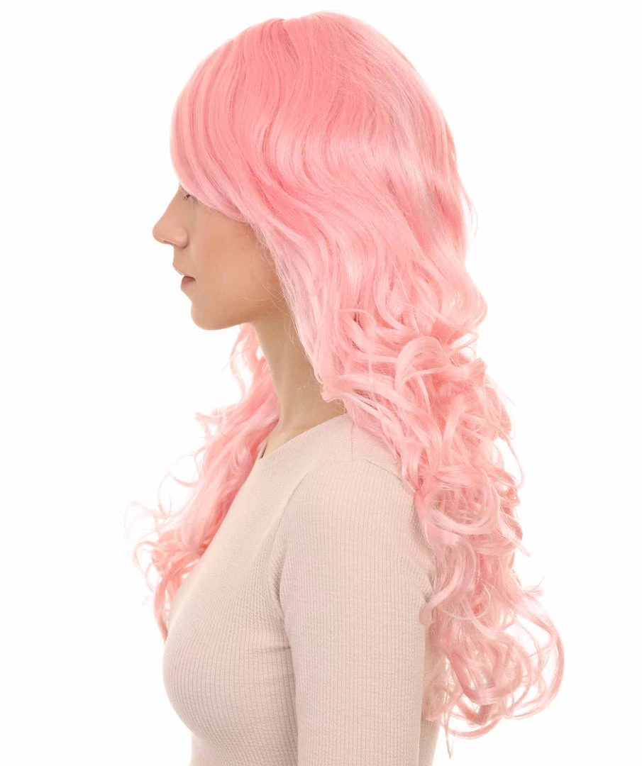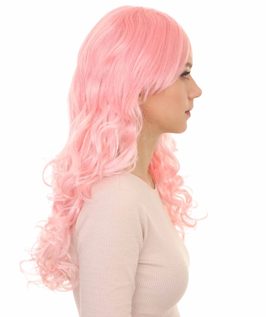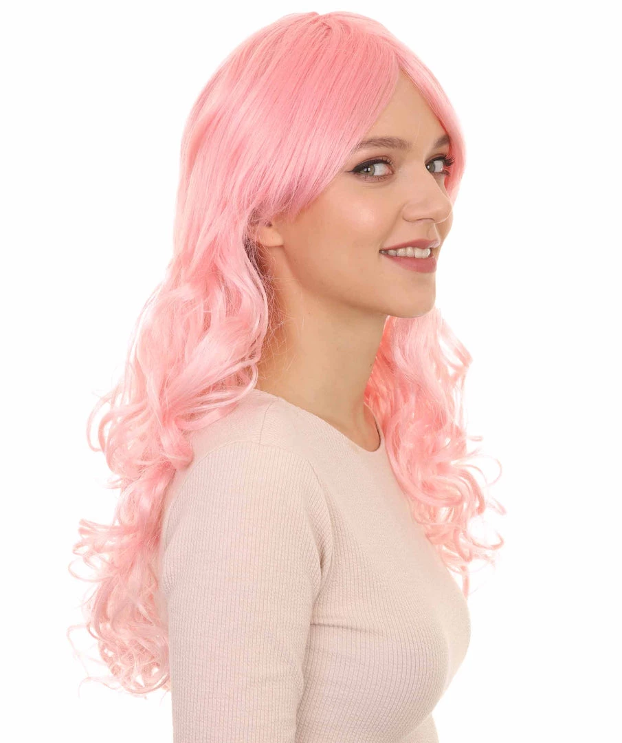 HPO Women’s Womens Long Wavy Wig | Pink Fashion Wigs | Premium Breathable Capless Cap