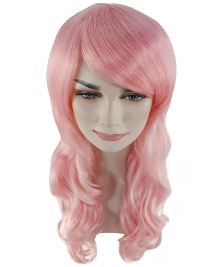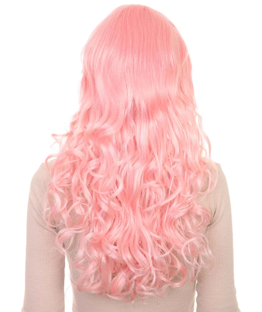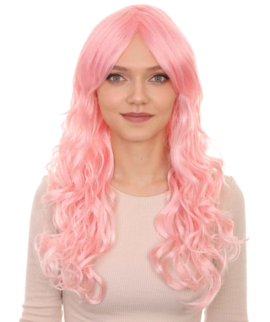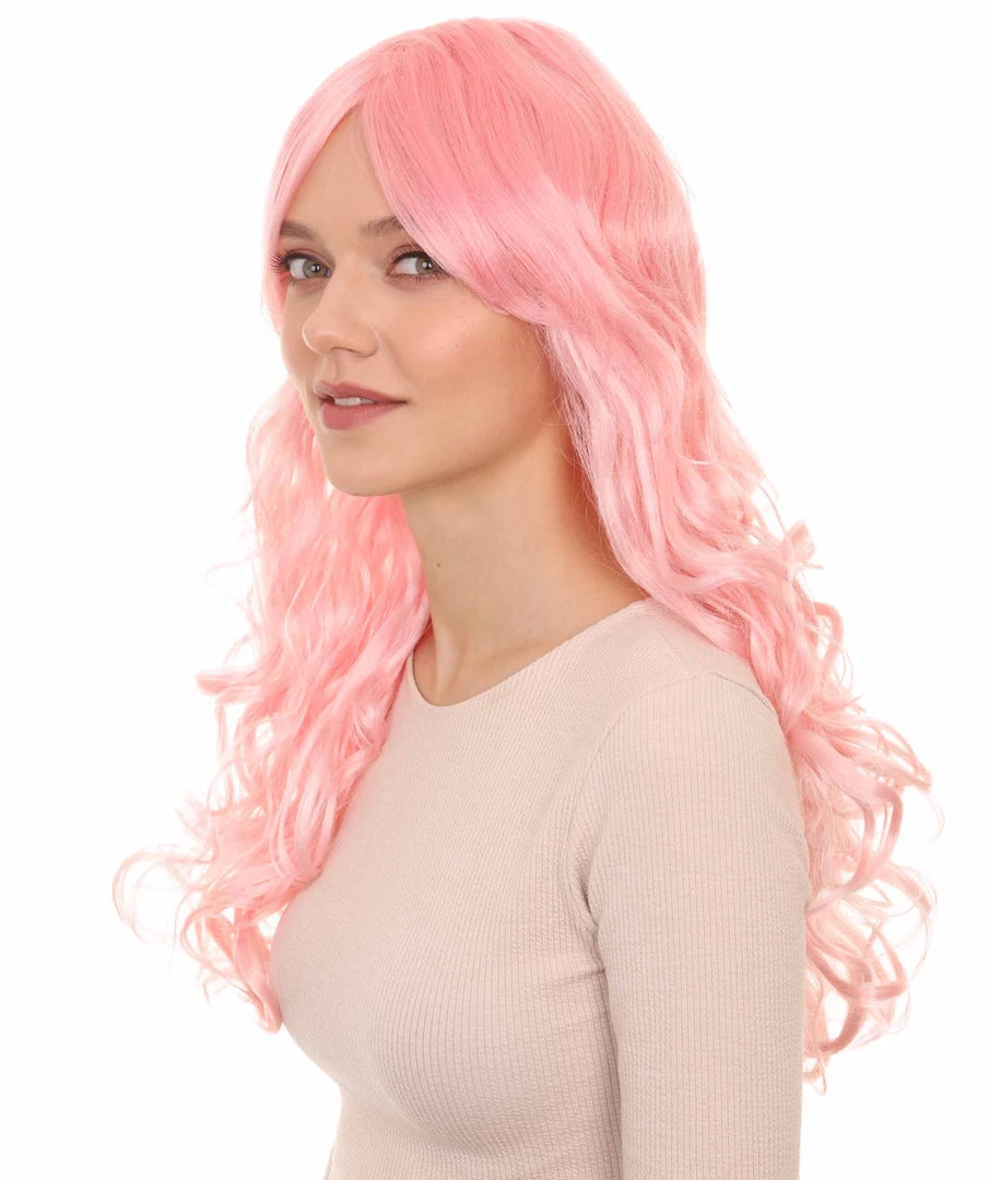 HPO Women’s Womens Long Wavy Wig | Pink Fashion Wigs | Premium Breathable Capless Cap
