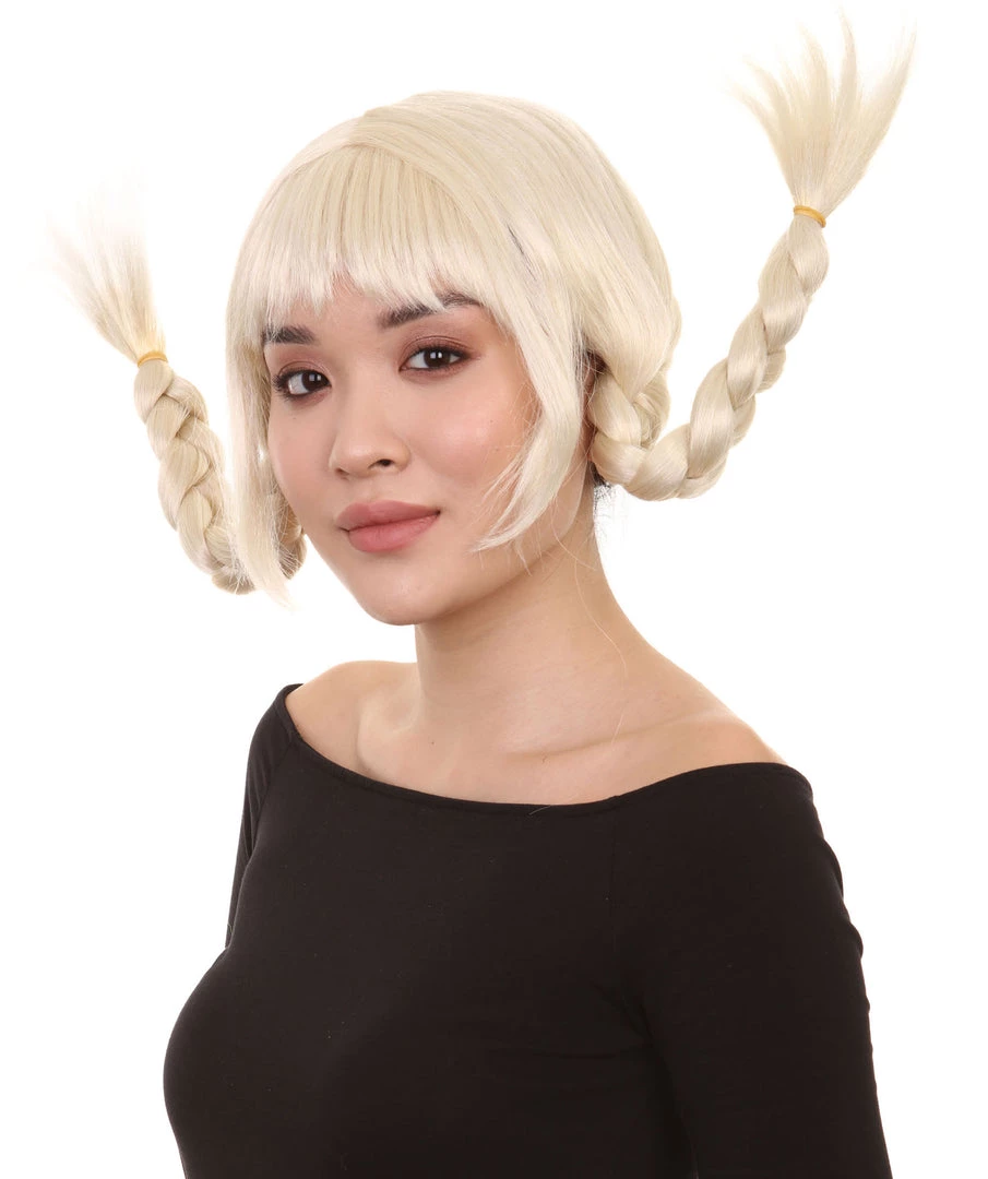HPO Women Wig For Cosplay | Blonde Braided Character Cosplay Halloween Wig | Premium Breathable Capless Cap Men’s