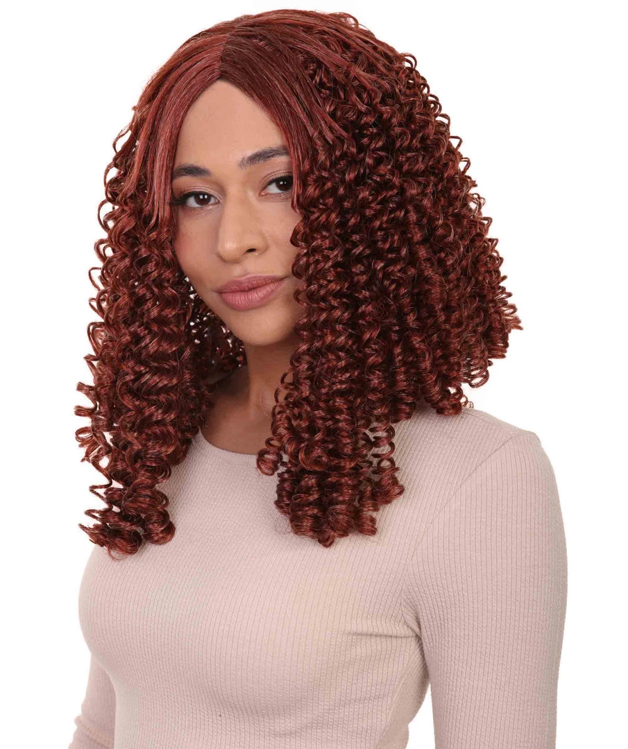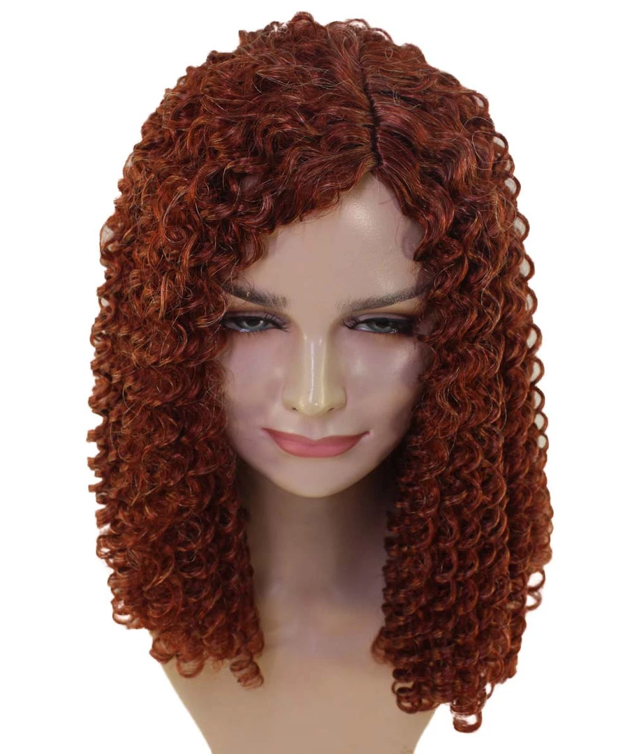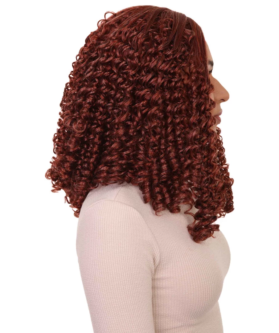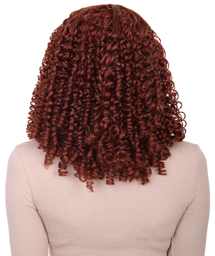HPO Womens 18th Century Colonial Lady Curly Wig | Auburn Historical Wig | Premium Breathable Capless Cap