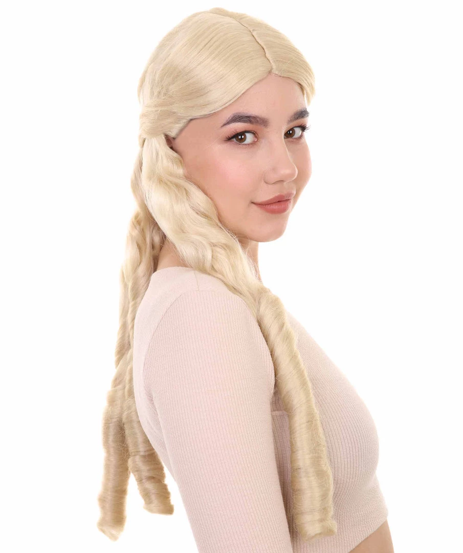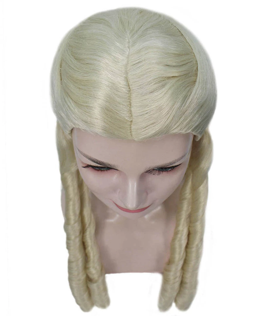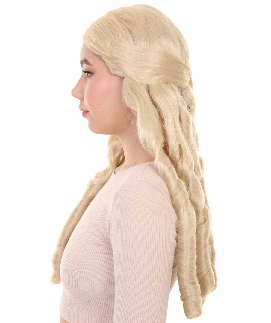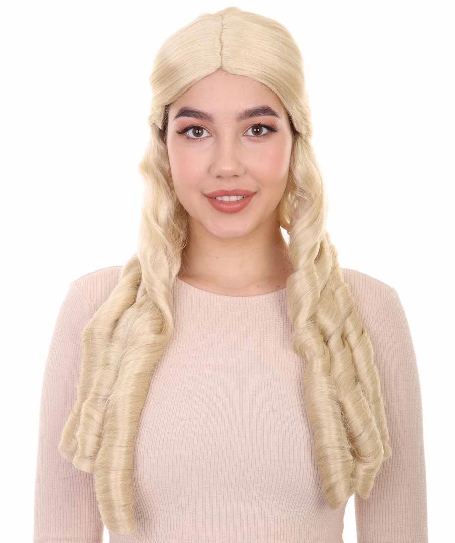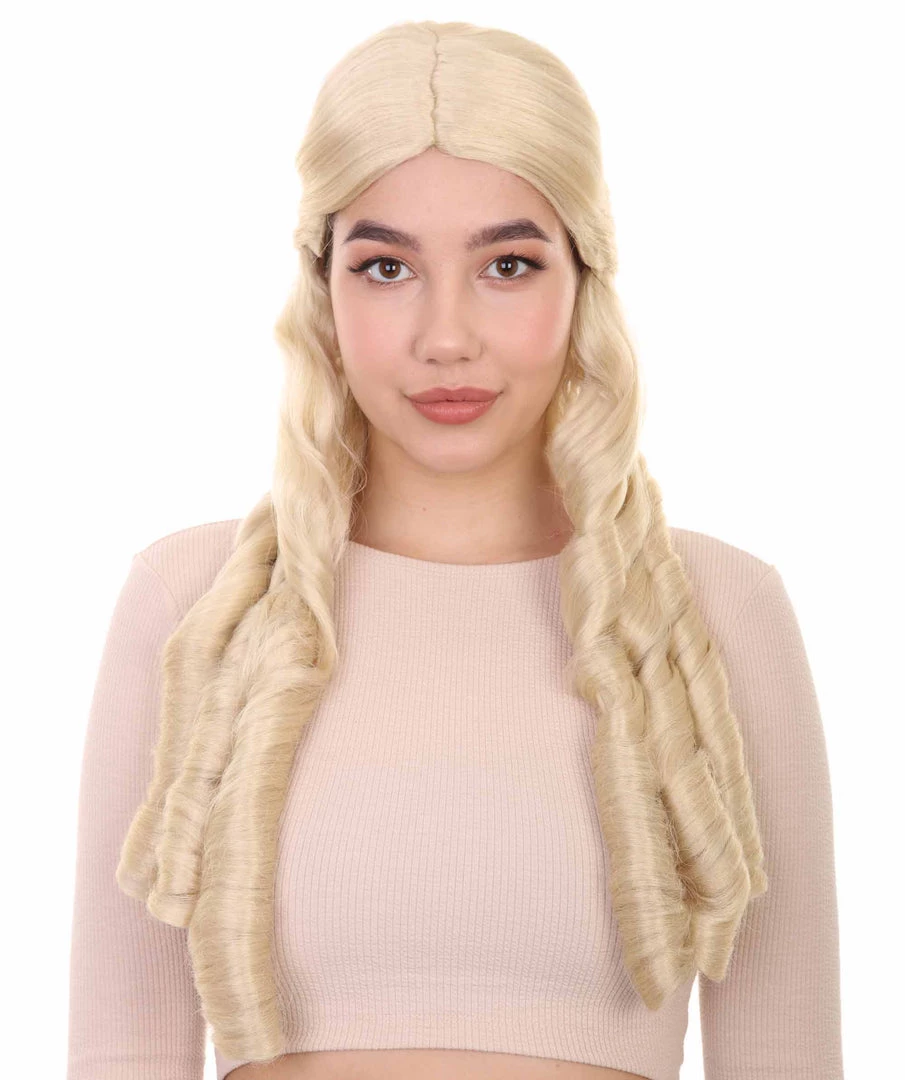 HPO Womens 18th Century Colonial Lady Long Blonde Historical Wig | Premium Breathable Capless Cap Women’s