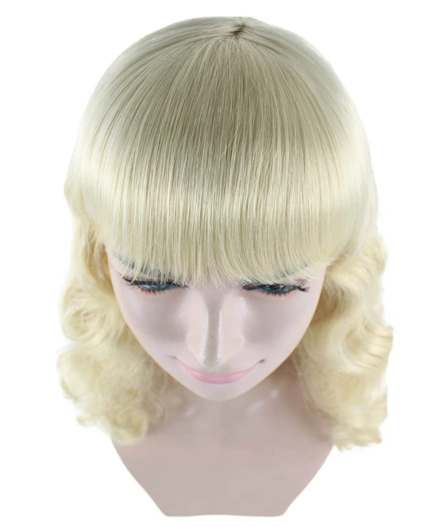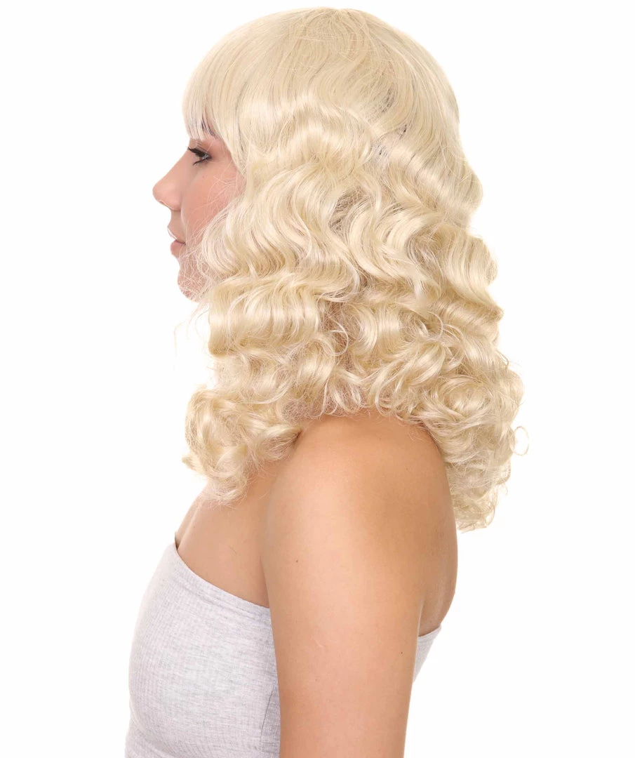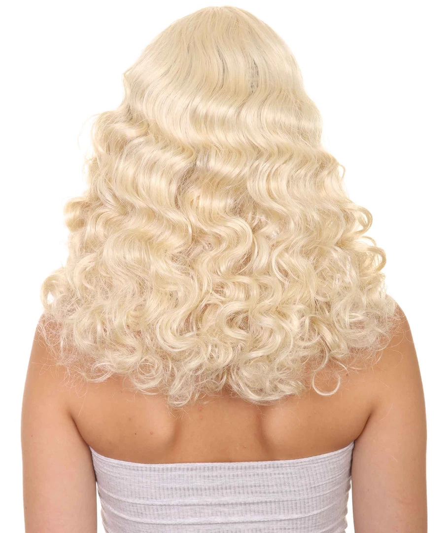 HPO Womens Blonde Pin Up Girl Wig | Medium Curly Cosplay Halloween Wig | Premium Breathable Capless Cap