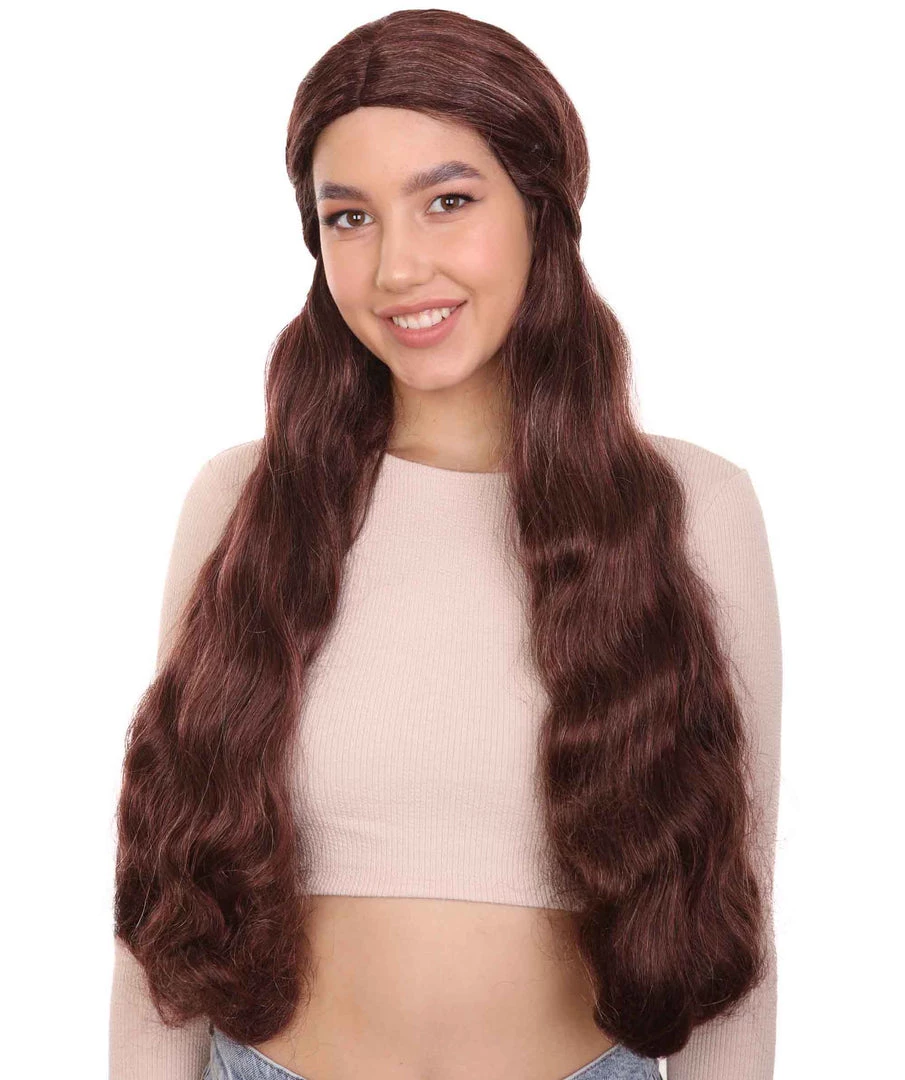 HPO Womens Brown Long Wig | TV/Movie Wigs | Premium Breathable Capless Cap