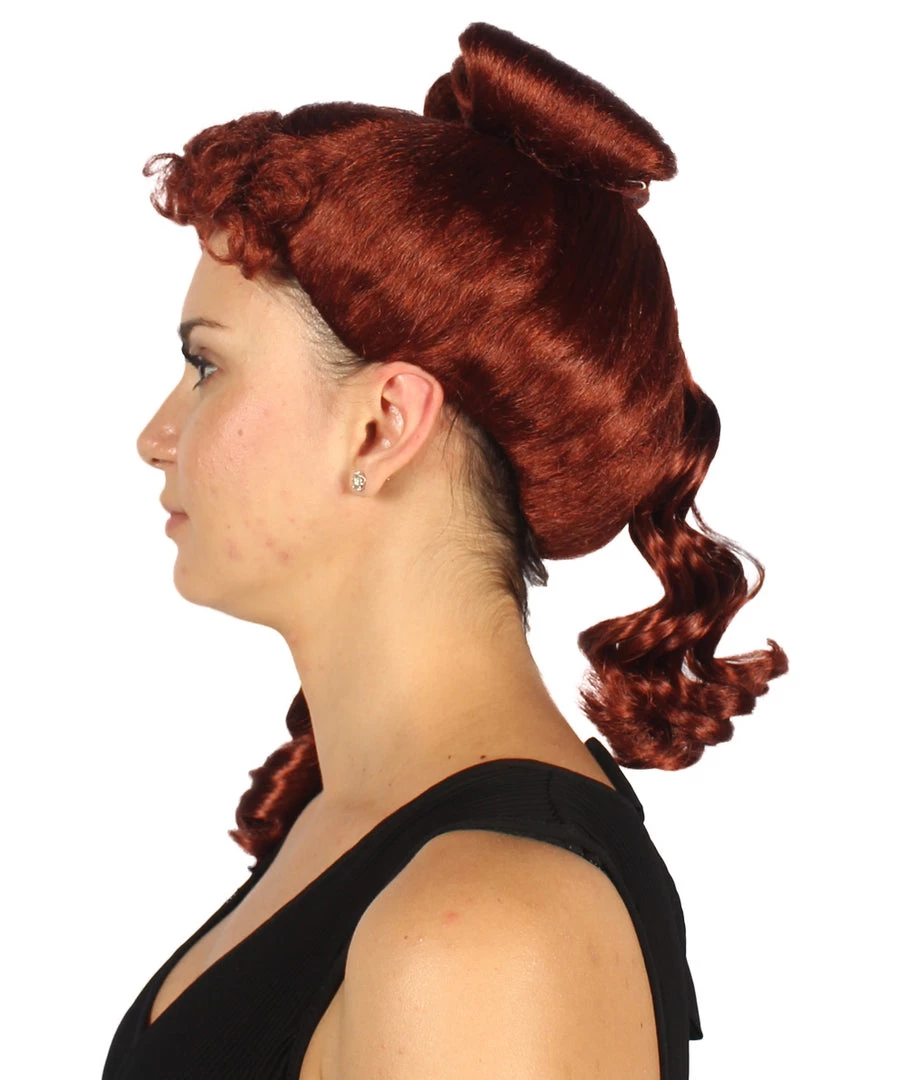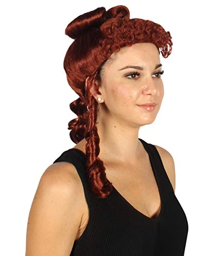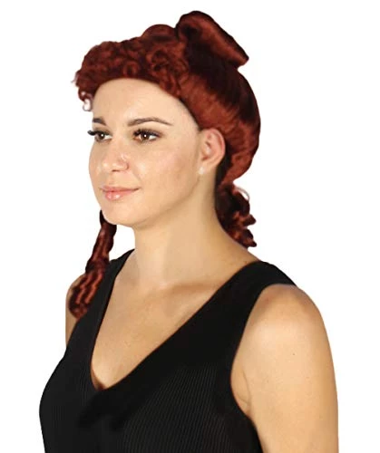 HPO Womens Colonial Lady Wig | Burgundy Historical Wigs | Premium Breathable Capless Cap Women’s