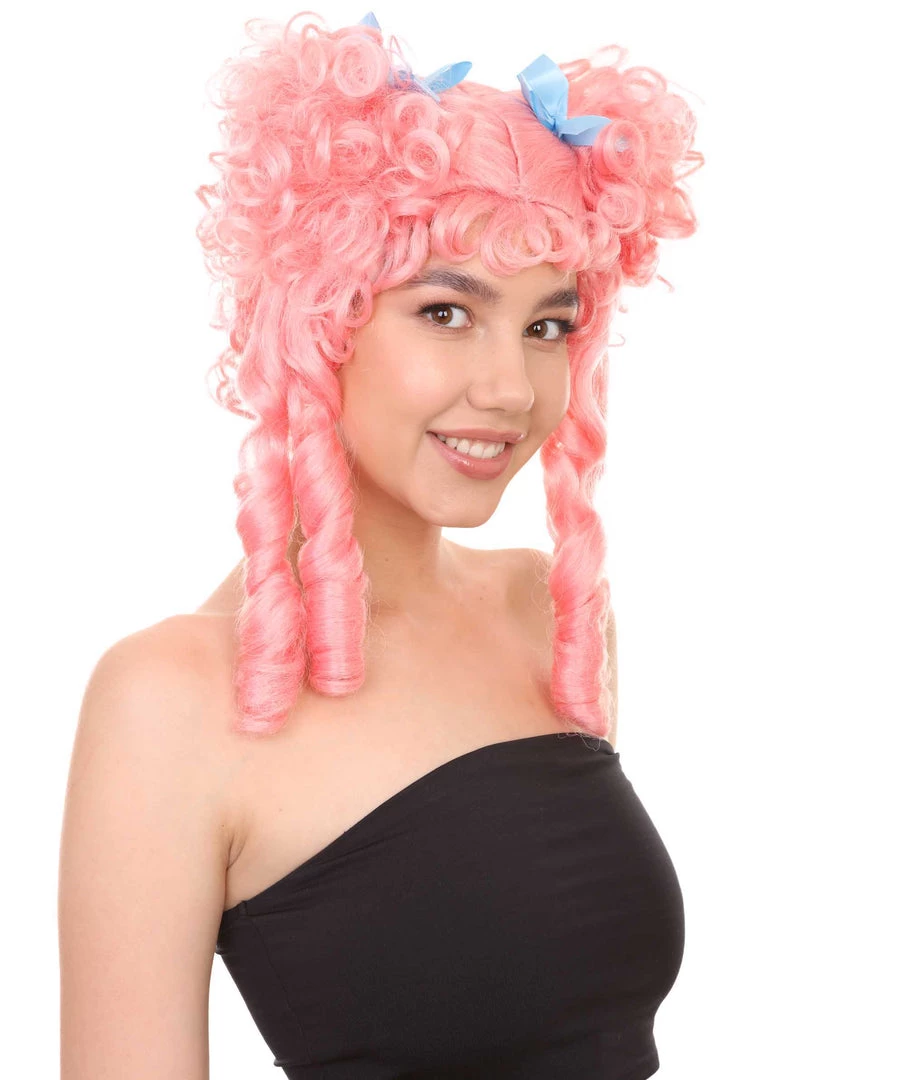 HPO Womens Colonial Lady With Blue Lece Wig | Pink Historical Wigs | Premium Breathable Capless Cap Women’s