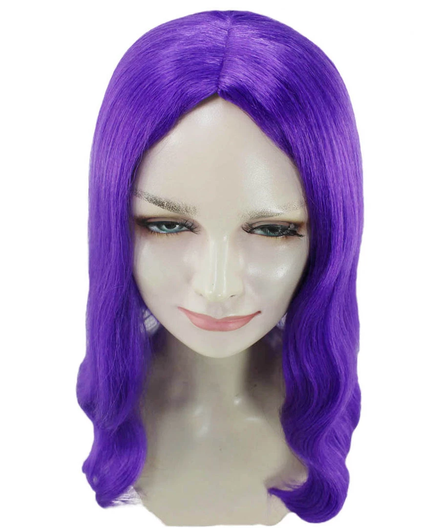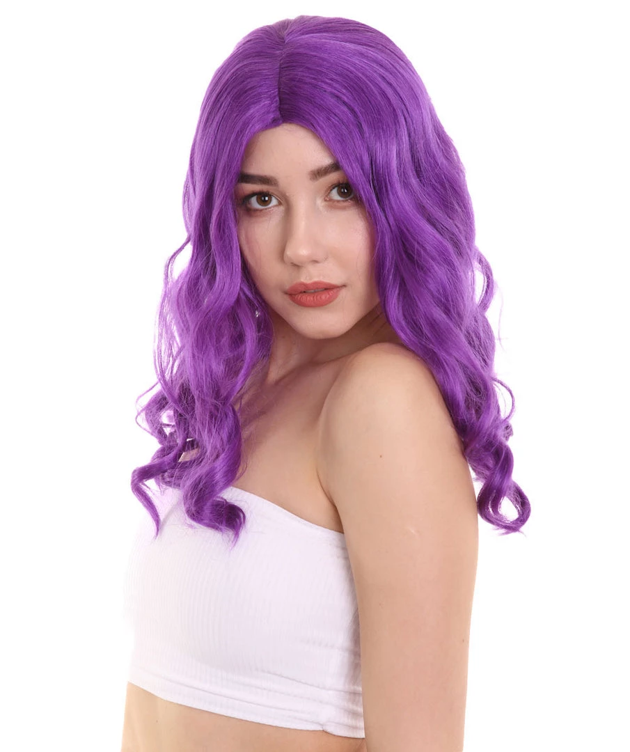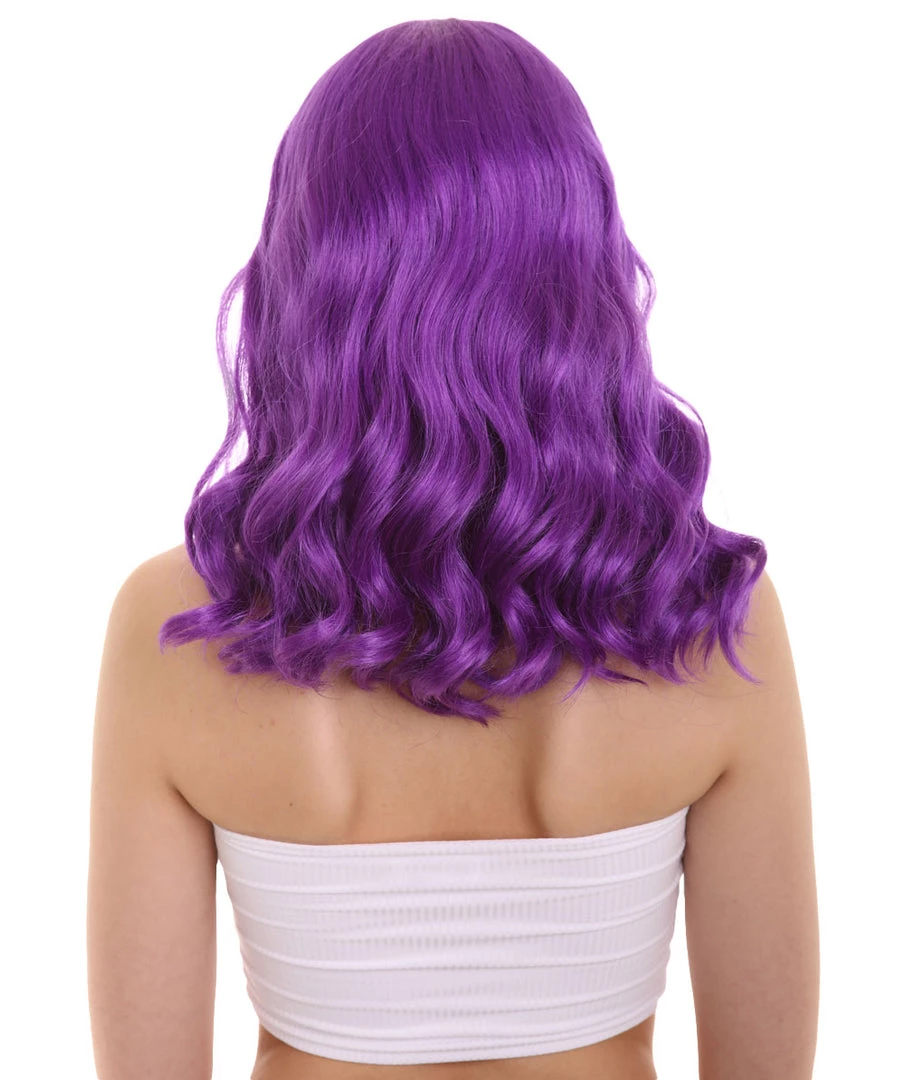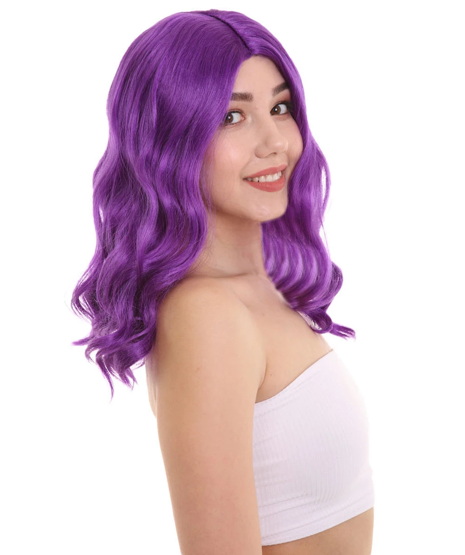 HPO Womens Fantasy Medium Wavy Wig | Purple TV/Movie Wigs | Premium Breathable Capless Cap
