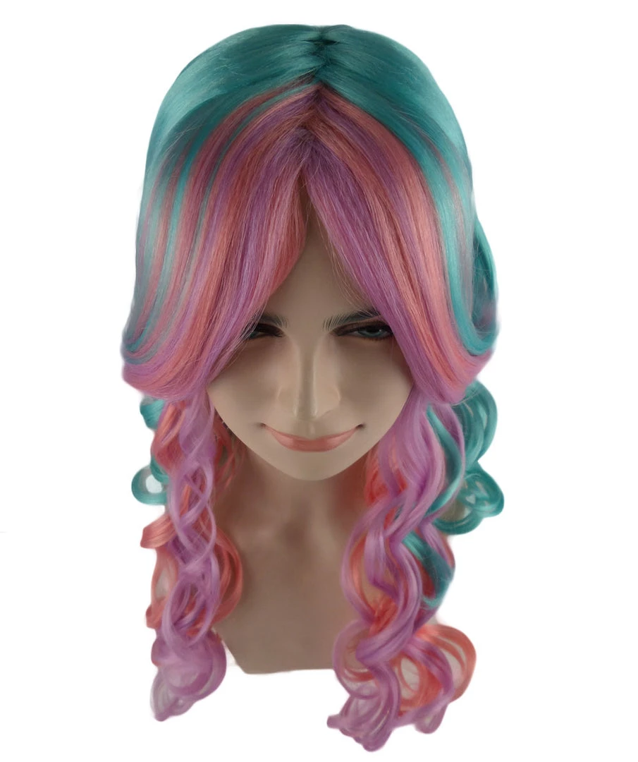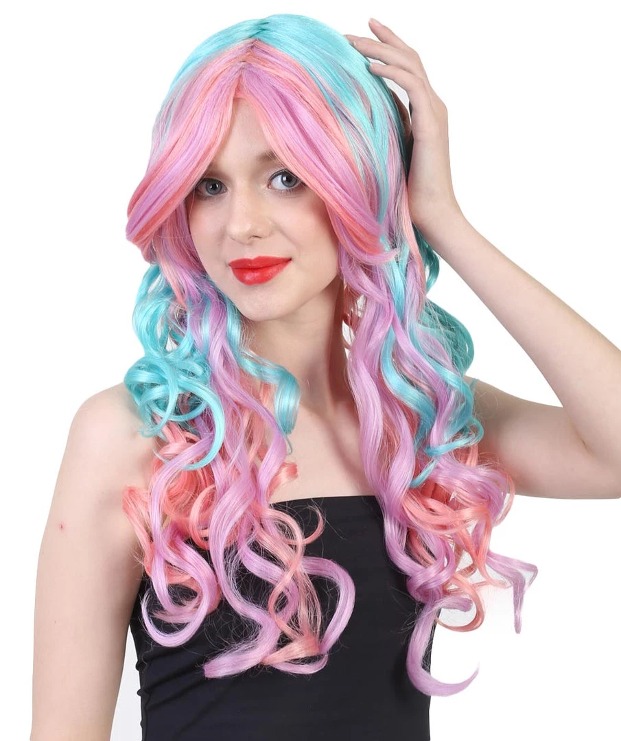 HPO Womens Fantasy Wig | Pink Sky Blue Long Curly Party Every Ready Wig | Premium Breathable Capless Cap Men’s