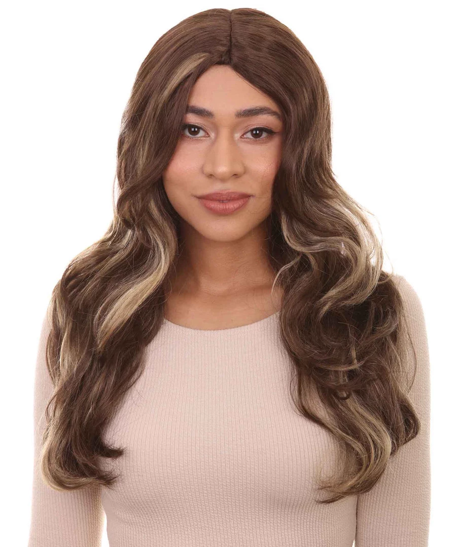 HPO Womens Fashion Highlight Wavy Wig | Brown Fashion Wigs | Premium Breathable Capless Cap Women’s
