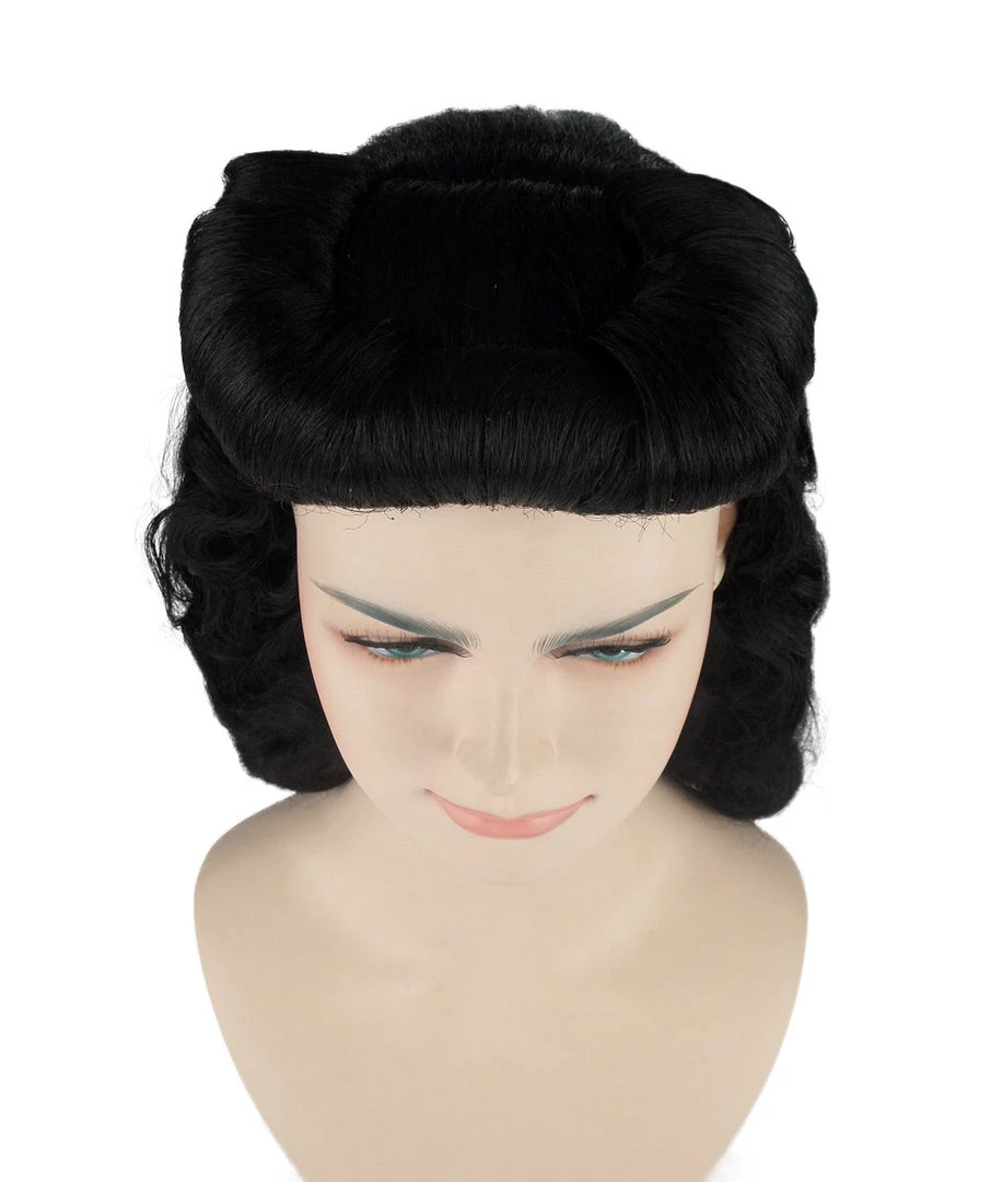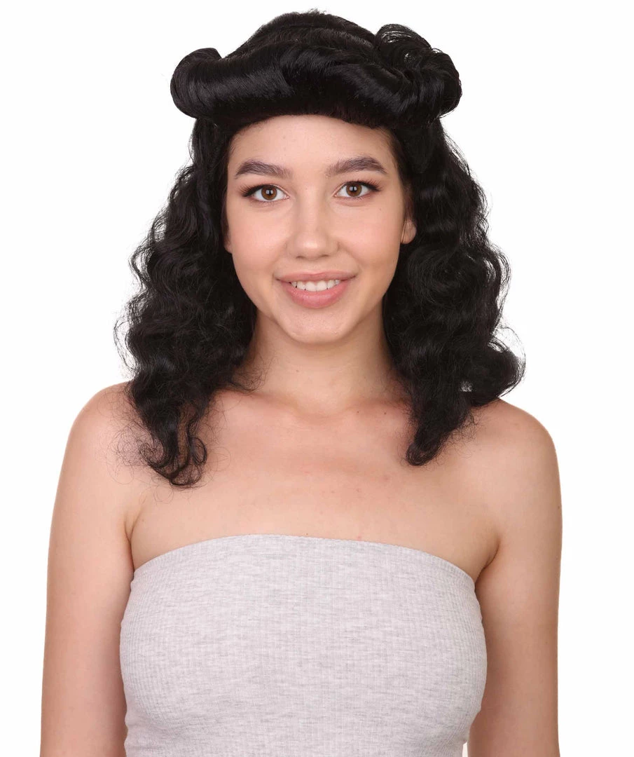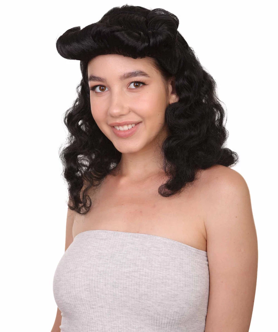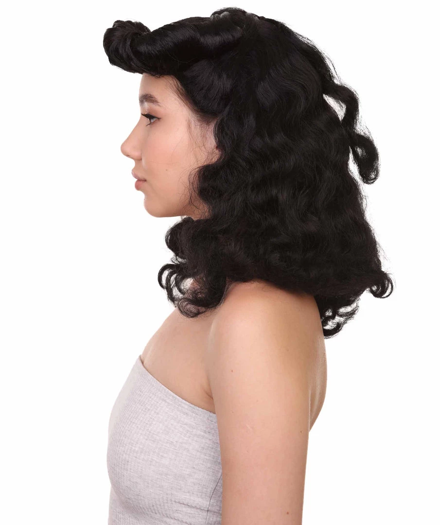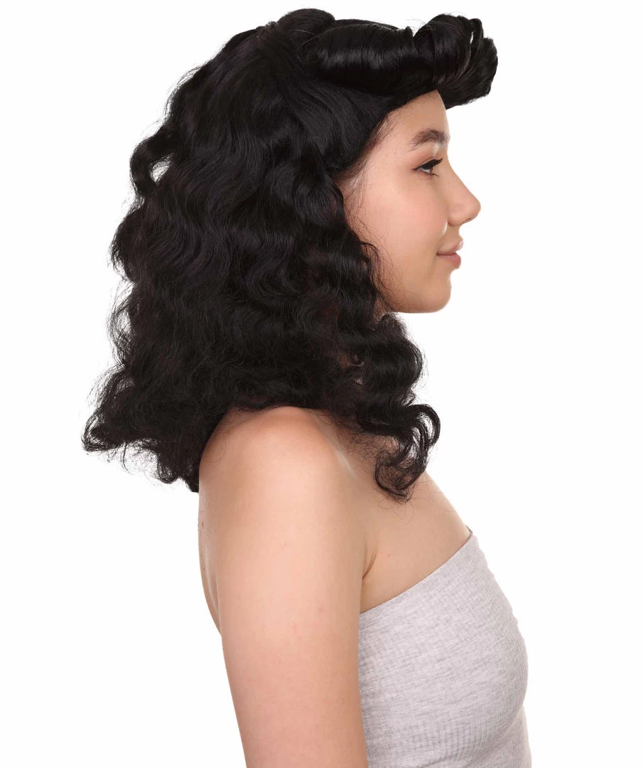 HPO Womens Pin Up Wig | Black Party Ready Fancy Cosplay Halloween Wig | Premium Breathable Capless Cap
