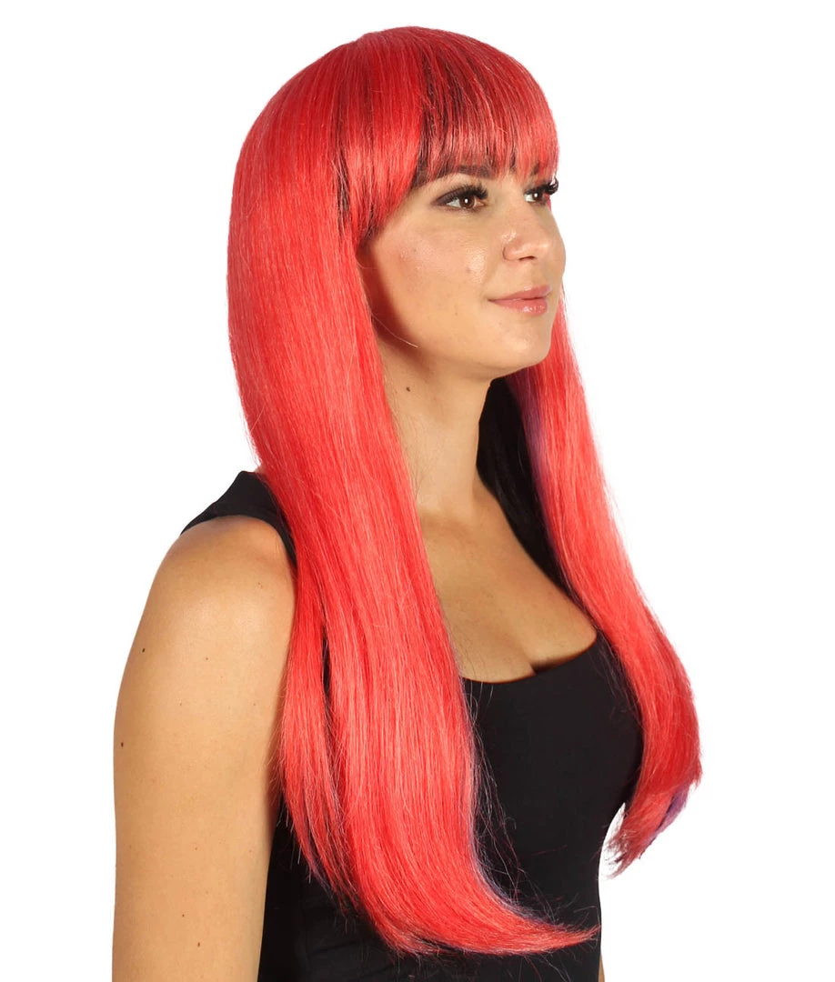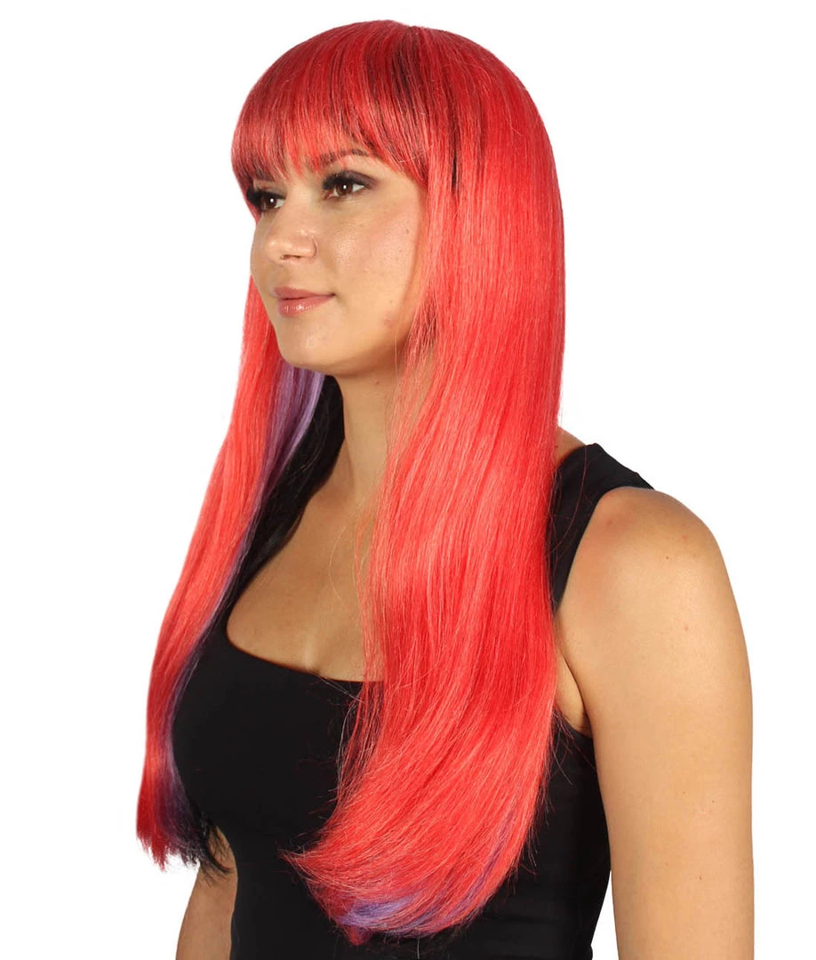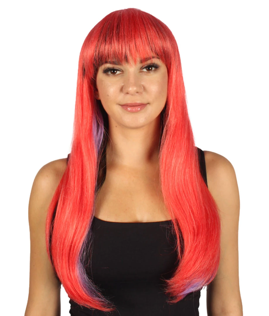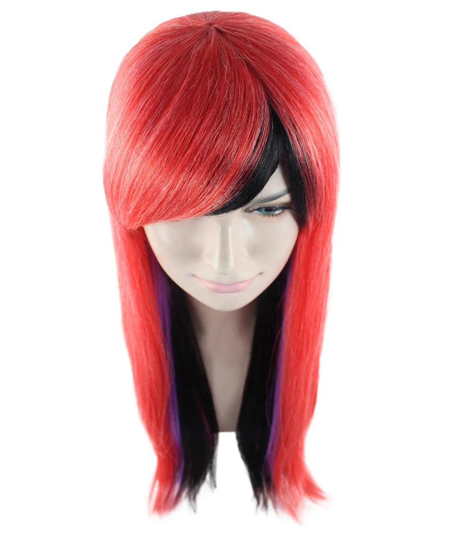 HPO Womens Red & Black Temptress Wig | Party Ready Fancy Cosplay Halloween Wig | Premium Breathable Capless Cap