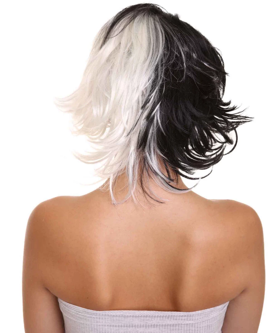 HPO Womens Wig | TV/Movie Short Black & White Fancy Cosplay Halloween Wig | Premium Breathable Capless Cap