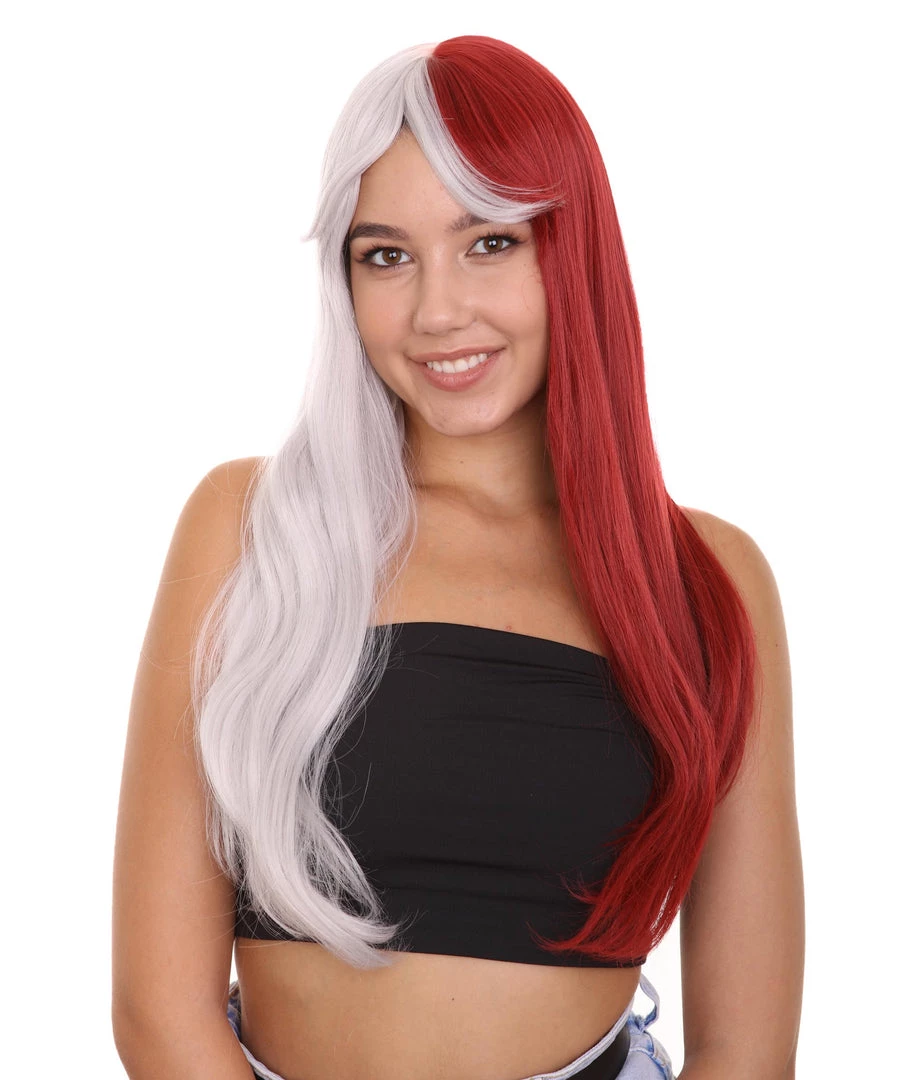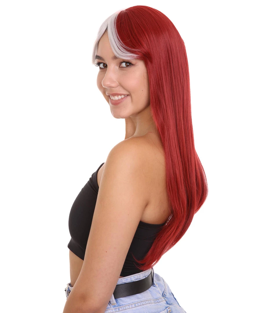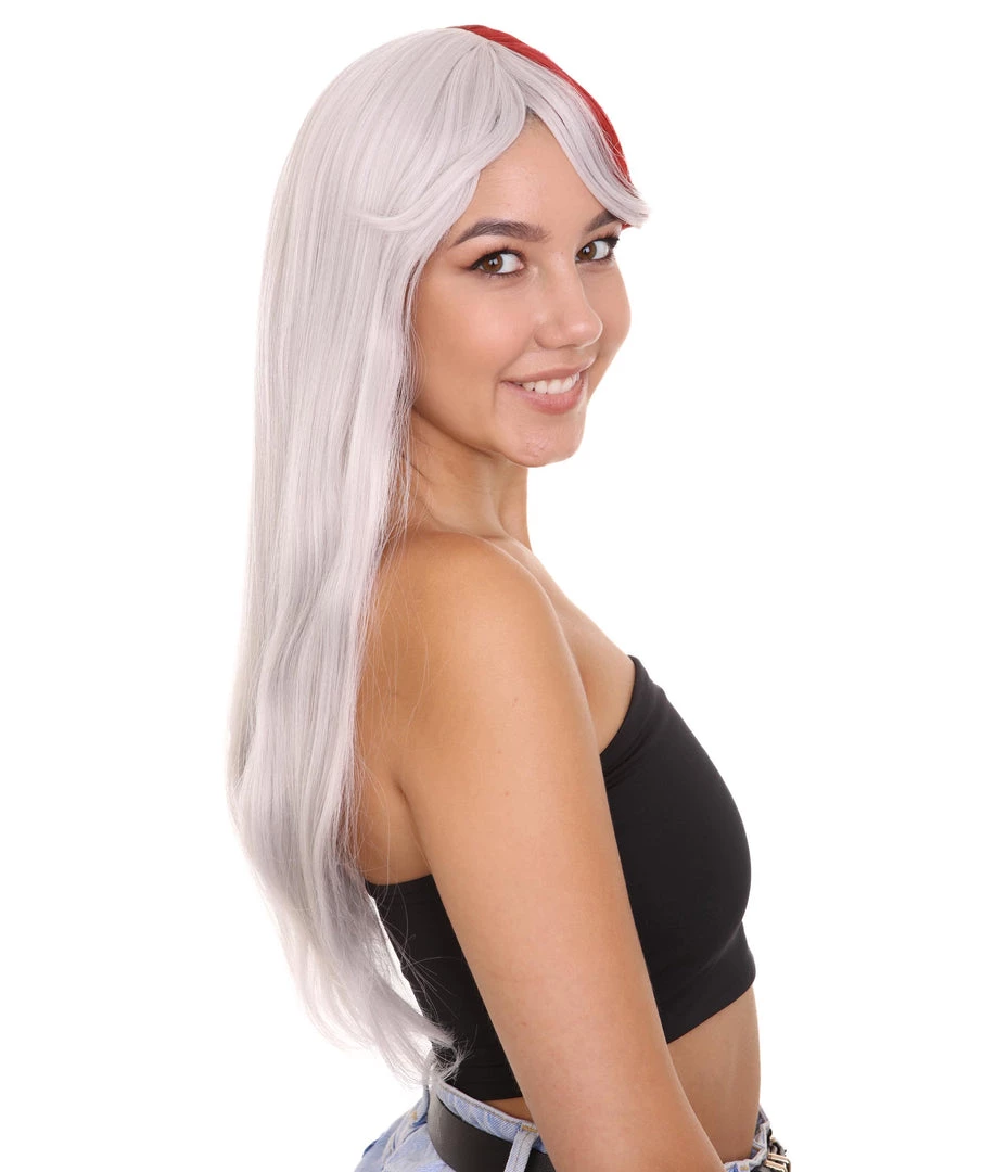 KOSMOS CW Women’s Long Two Tone 25′ Silver And Red Synthetic Anime Wig – Capless Cap Heat Resistant Fibers – Bob Style With Pointy Bangs