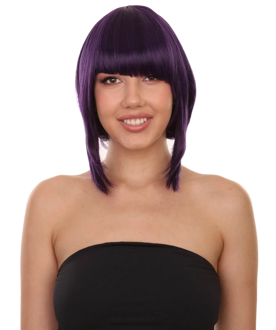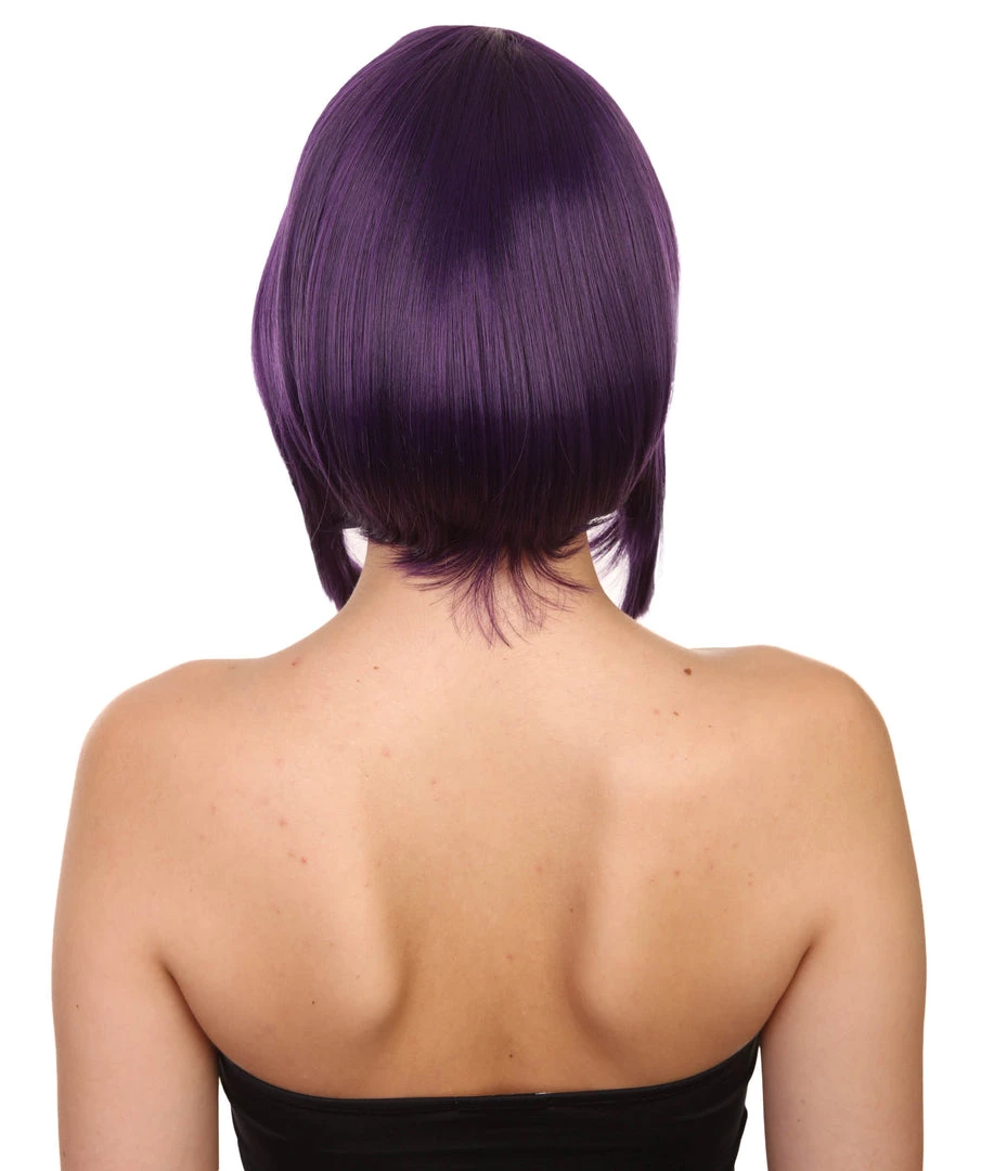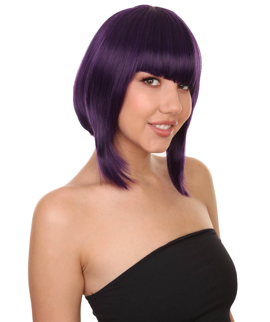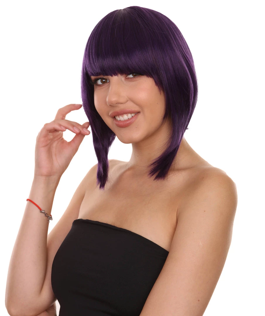 KOSMOS CW Women’s Short 14′ Unbalanced Bangs Purple Hero Rocker Girl Synthetic Anime Wig – Capless Cap Heat Resistant Fibers – Unconventional Bob Style