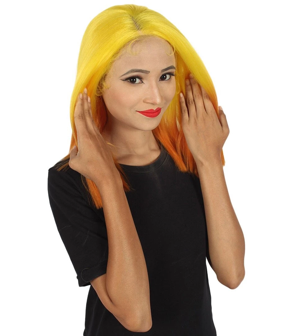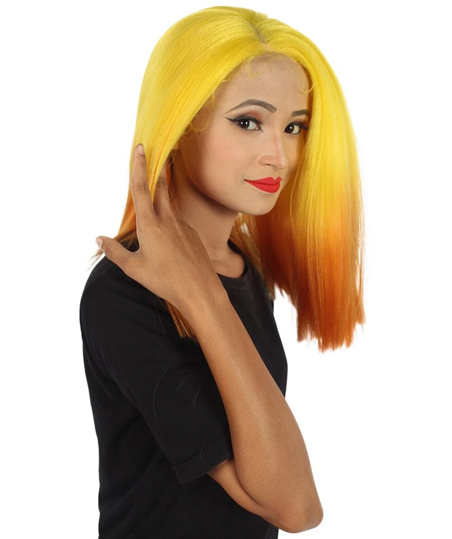 Womens Sunrise Shoulder Length 4×4 Lacefront – Dip Dye Synthetic Extra Bright Ombre Shoulder Length Bob – Adult Lace Front Wig | Nunique | Nunique